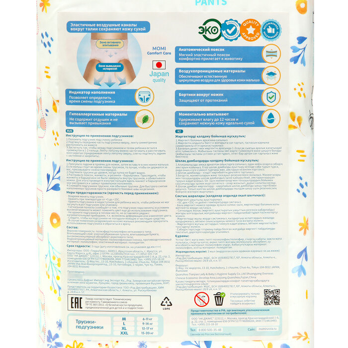 | Комплектация | Momi трусики Comfort Care M (6-11 кг) |
