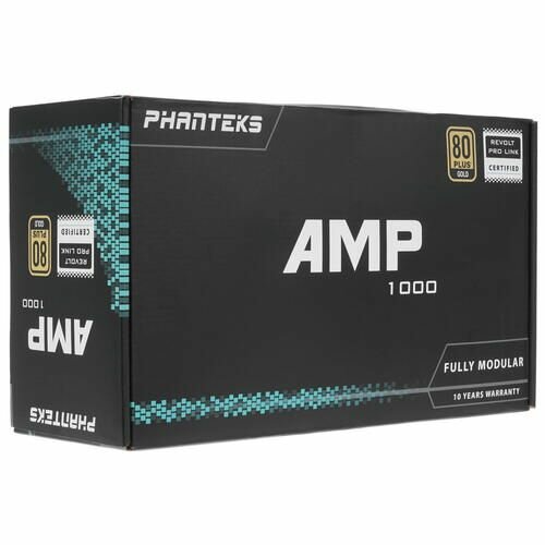 Phanteks Блок питания AMP 1000W Блок питания Active PFC, 120mm Fan, Japanese Capacitors, 80 PLUS Gold, Fully Modular РН-P1000G BK02 Retail