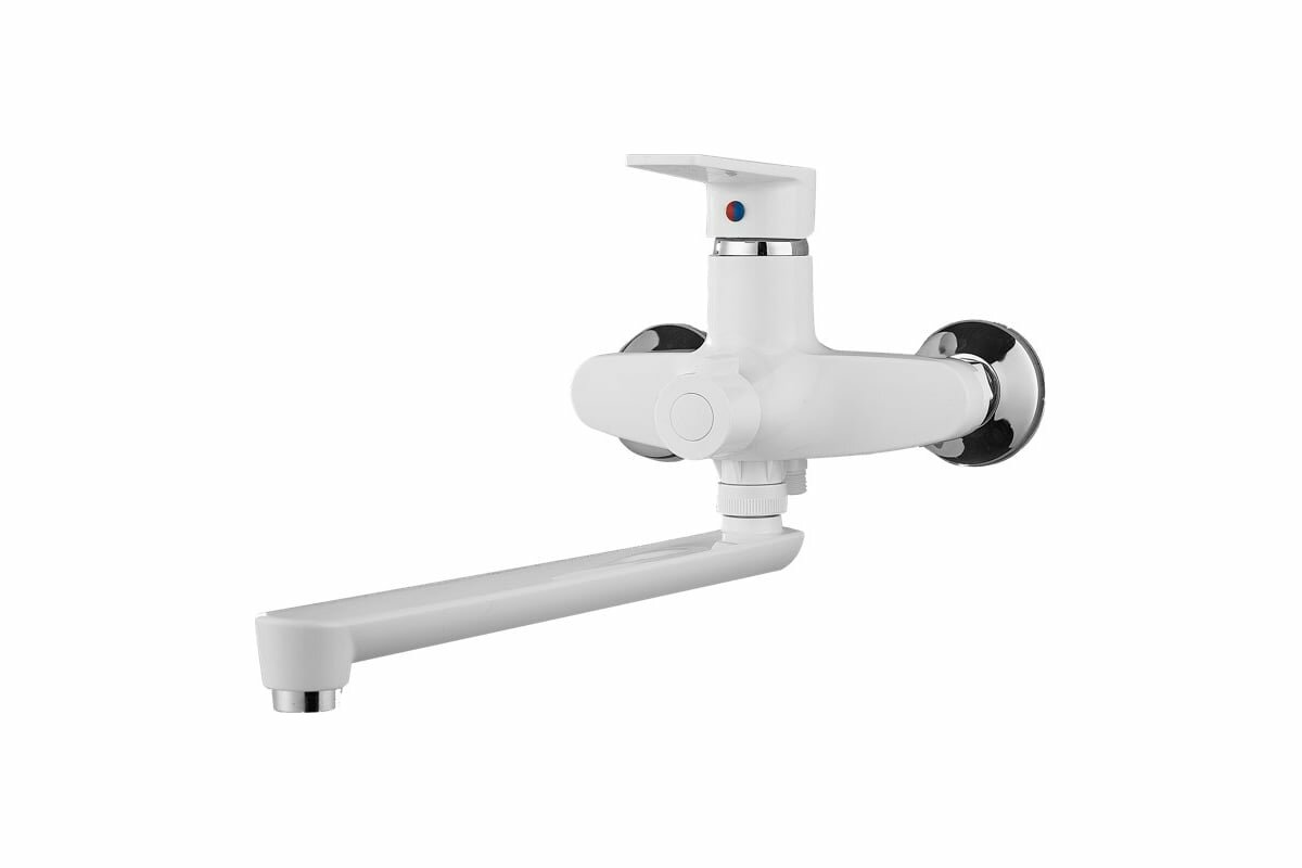 Смеситель для ванны, РМС PL6-006E, ABS пластик, с длинным поворотным изливом, белый