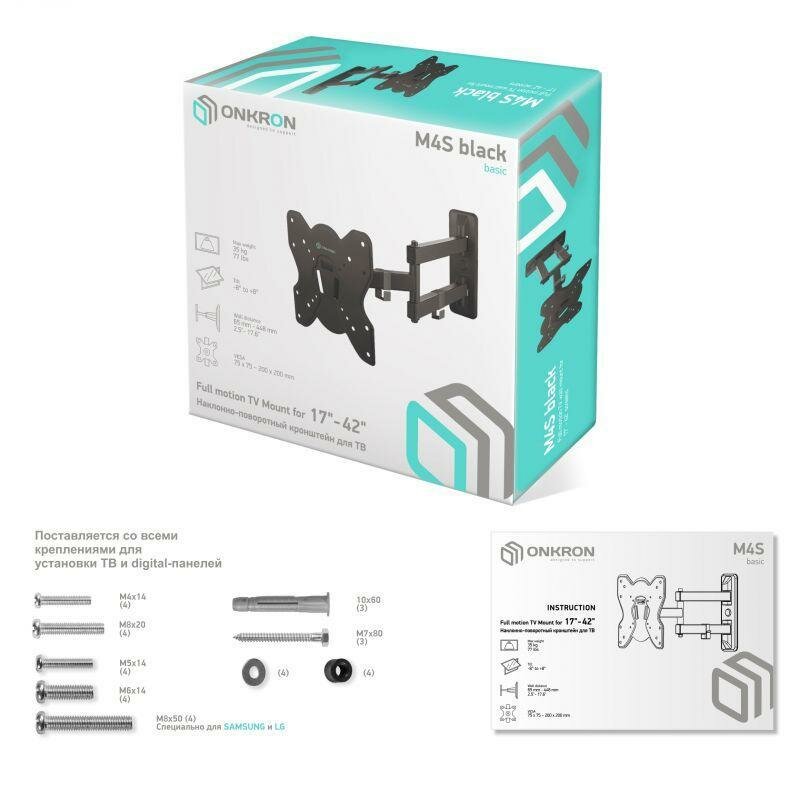 Кронштейн ONKRON M4S для телевизора 17"-43" наклонно-поворотный, чёрный