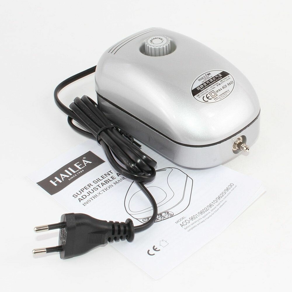 Аквариумный бесшумный компрессор HAILEA ACO-9610 с регулятором потока воздуха. Для коптилен, аквариума и пр.