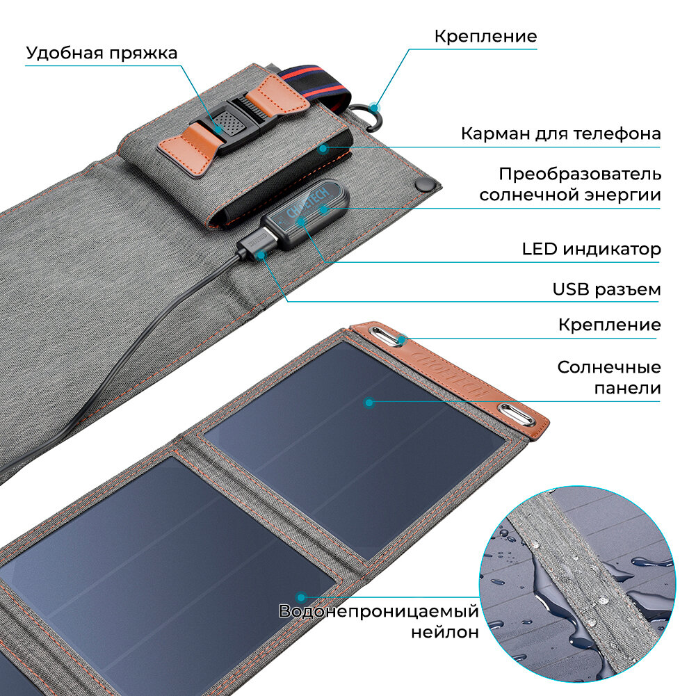Портативная складная солнечная батарея - панель Choetech 14 Вт (SC004) интересное: