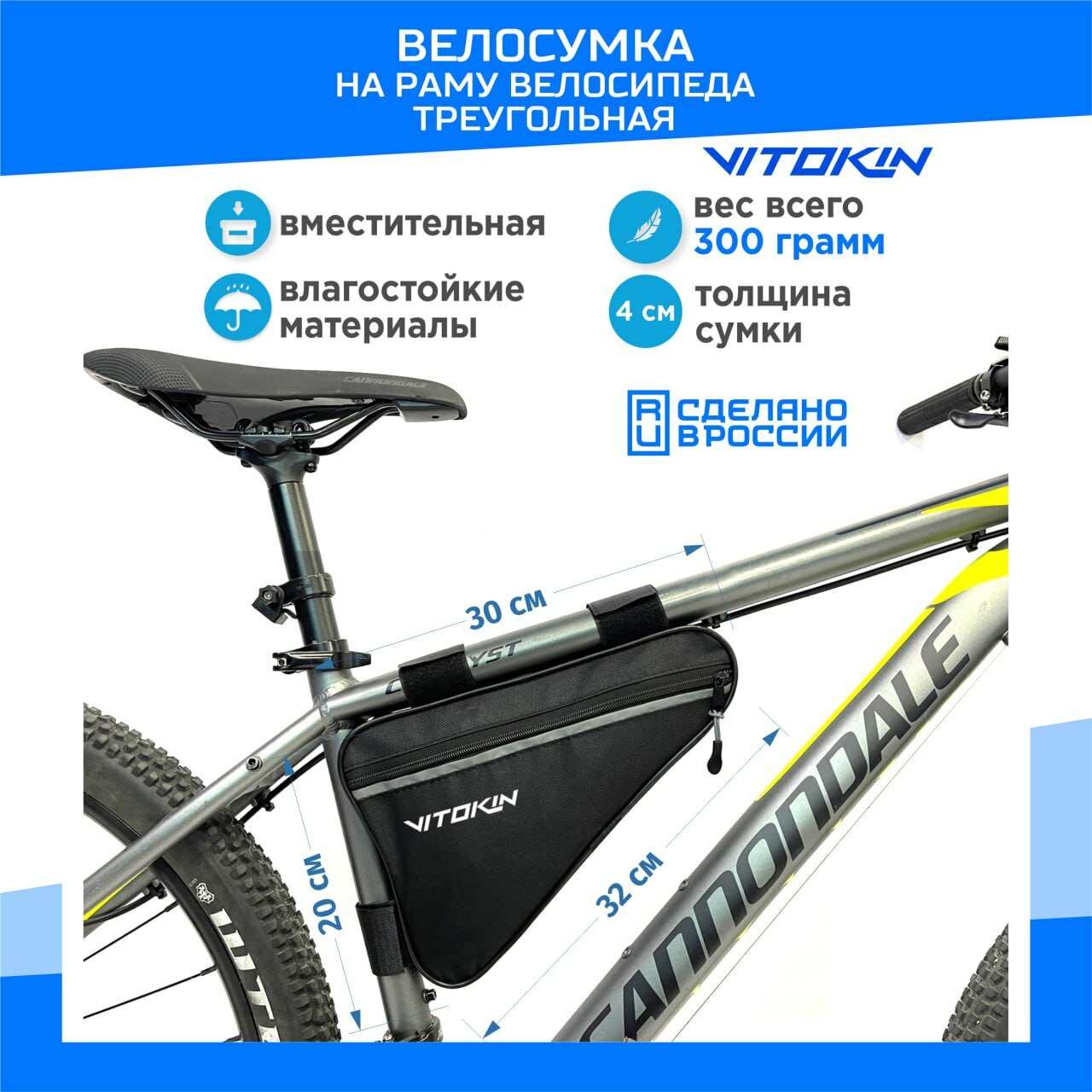 Велосумка под раму велосипеда, сумка велосипедная треугольная VITOKIN, голубая