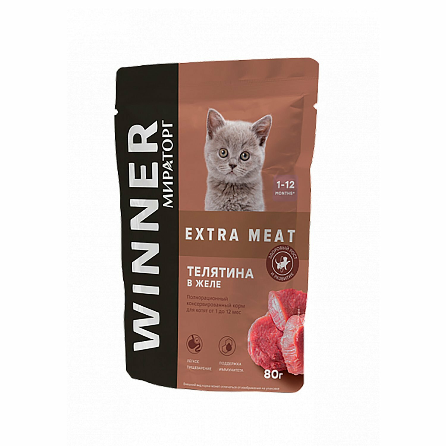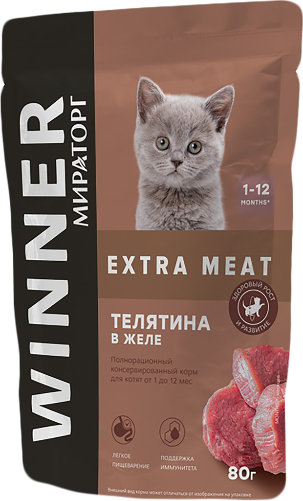 Виннер EXTRA MEATпауч для котят Телятина в желе 80г