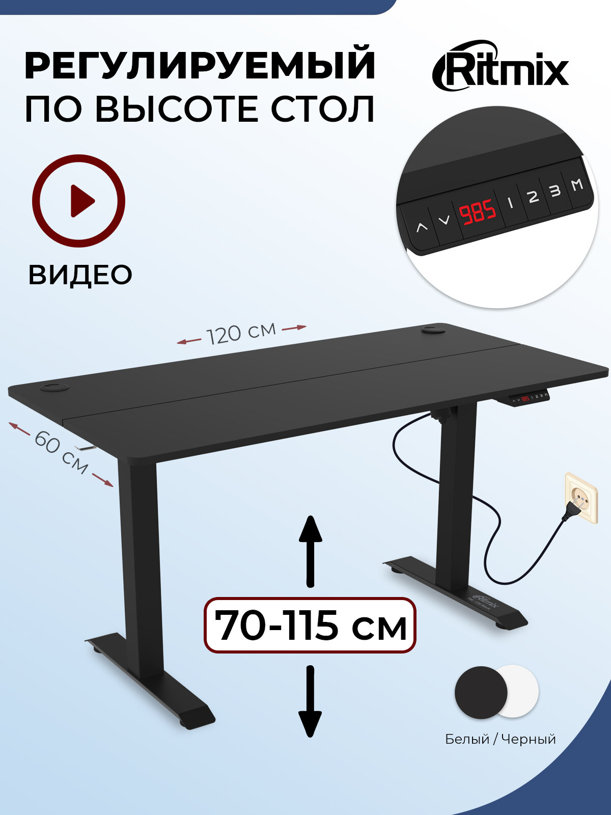 Купить Стол компьютерный Ritmix TBL-120 black (с электронной регулировкой) .