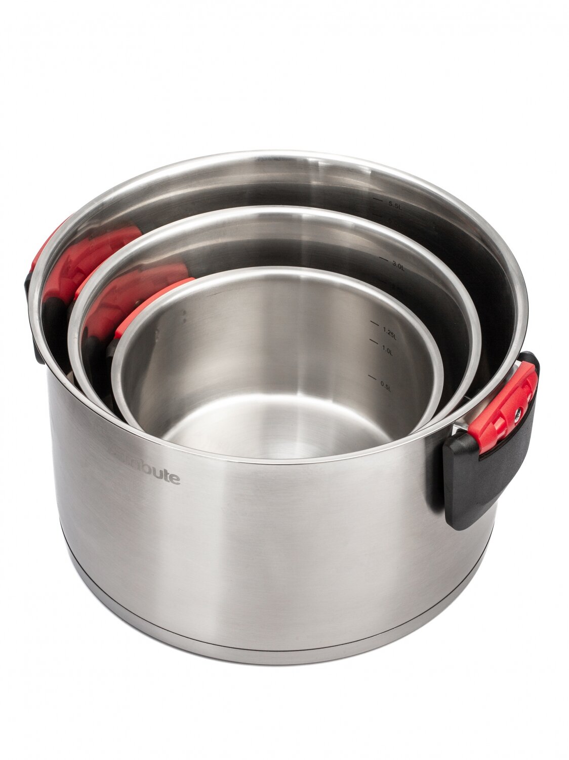 | Плюсы: | Складные ручки, толстое дно, хранение в виде матрешки |