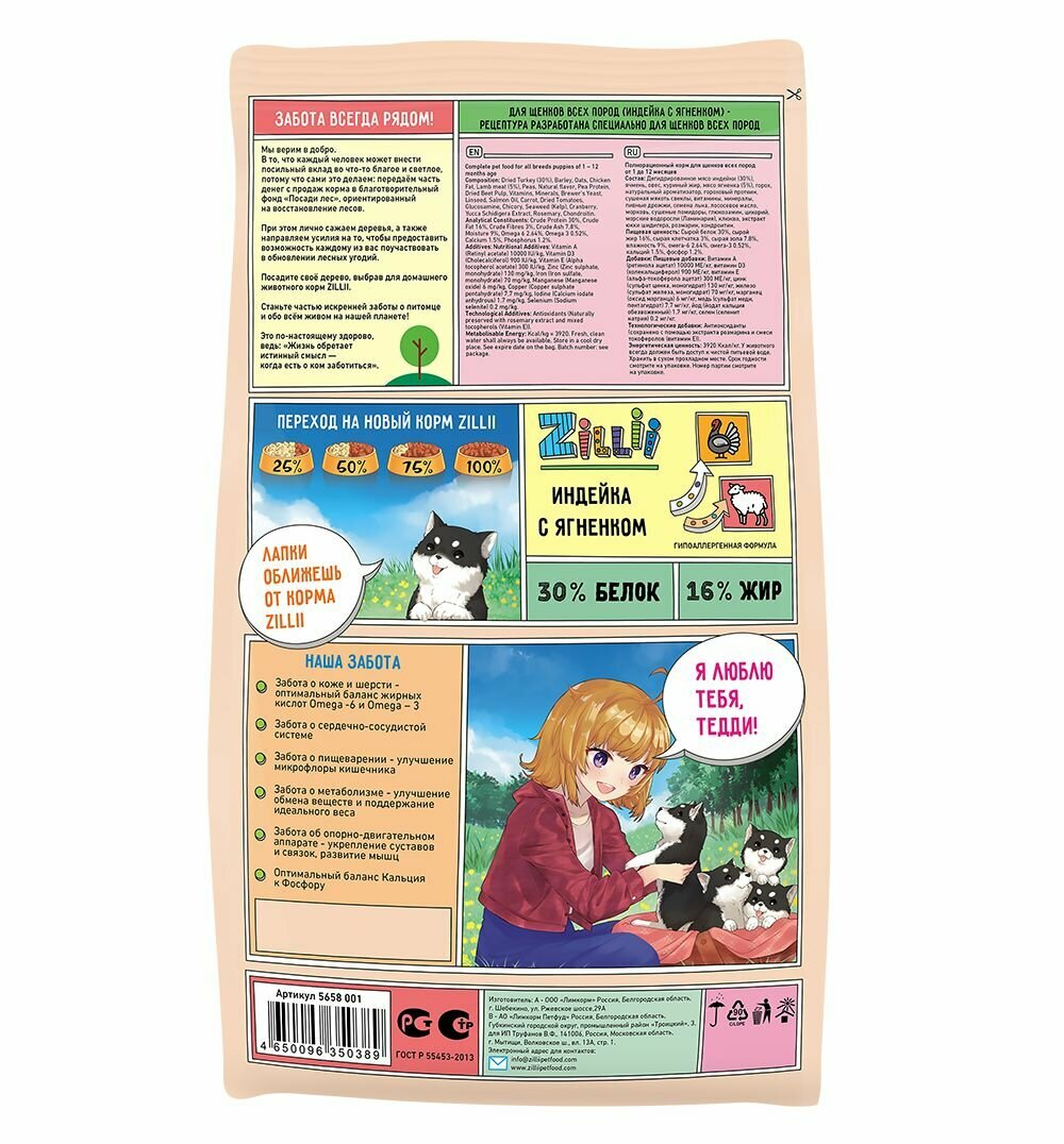 ZILLII 5658001/350389 Puppy Сухой корм для щенков Индейка с Ягнёнком 3кг