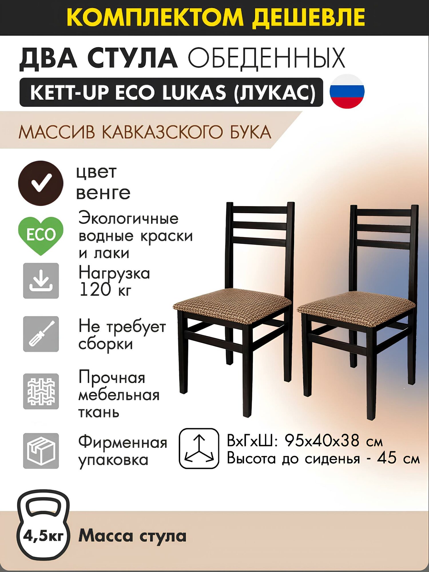 Комплект стульев (2штуки) KETT-UP ECO LUKAS (лукас) KU270П, цвет венге, массив бука интересное: