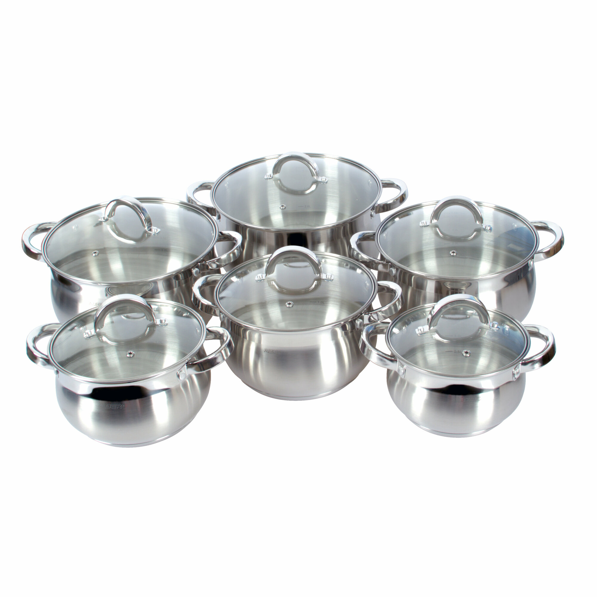 Набор кастрюль ALBERG AL-2004 12 предметов 2л/3л/4л/5л/6.5л/8, нержавеющая сталь, 7-ми слойное дно, индукция, стеклянные крышки