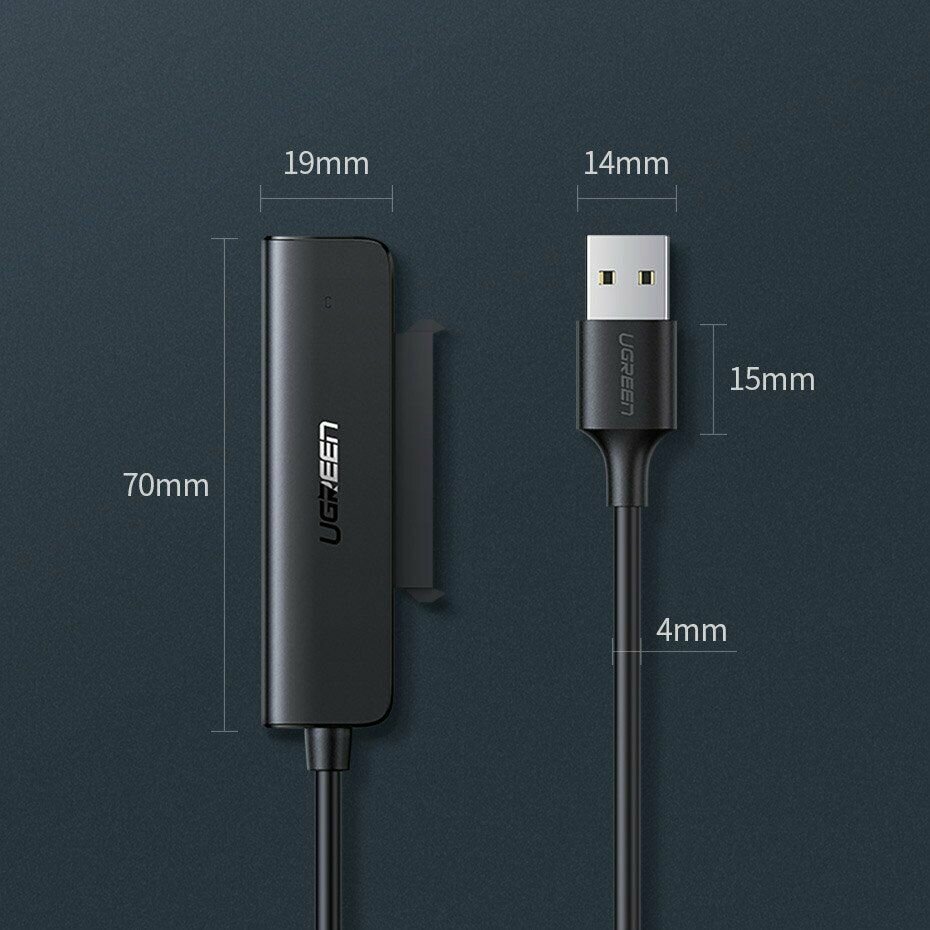 Конвертер UGREEN CM321 (70609) USB-A to 2.5-Inch SATA Converter. Длина 50 см. Цвет: черный