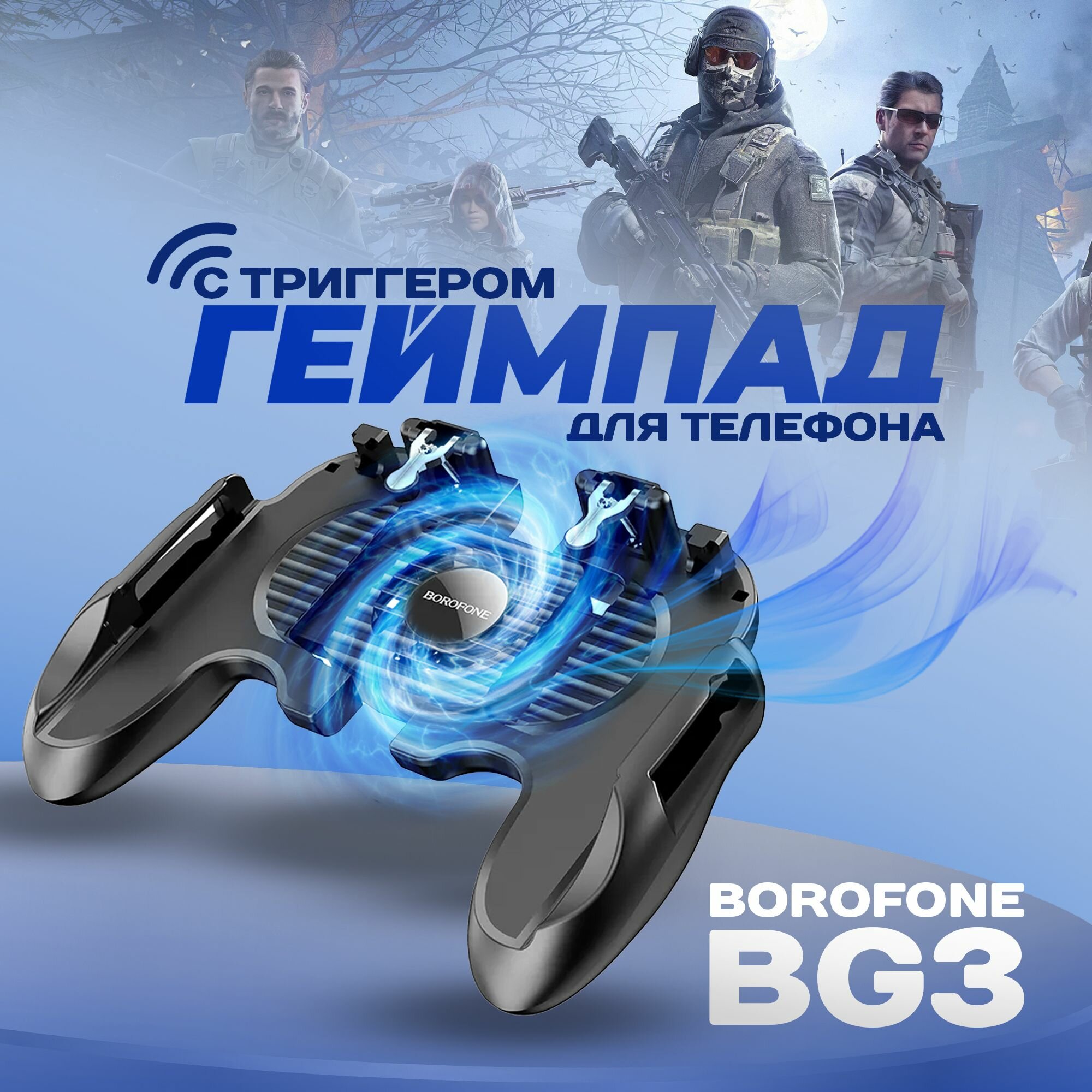 Геймпад Джойстик беспроводной с триггерами и охлаждением для смартфона BOROFONE BG3 Warrior, для игры в PUBG, COD, Fortnite, Standoff 2