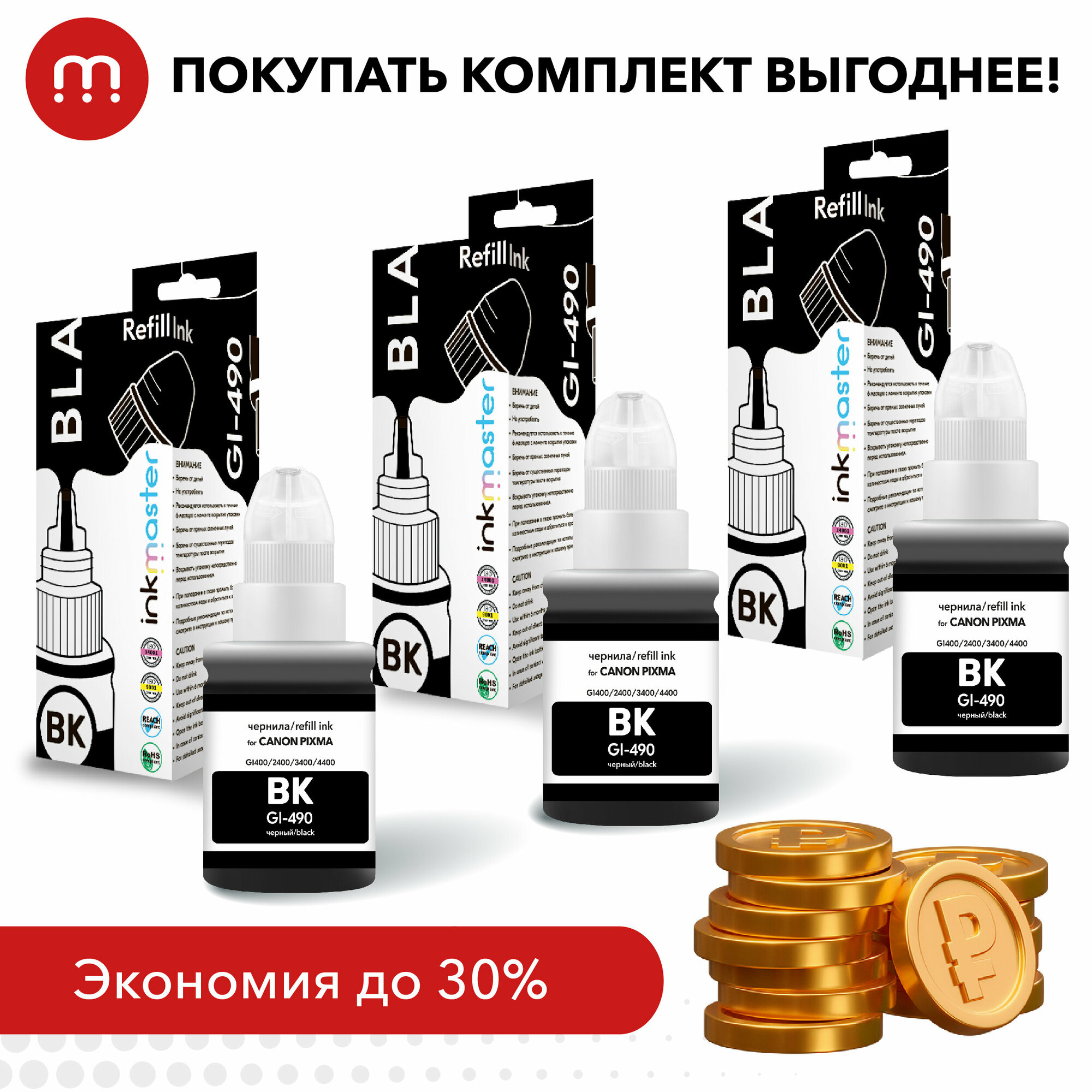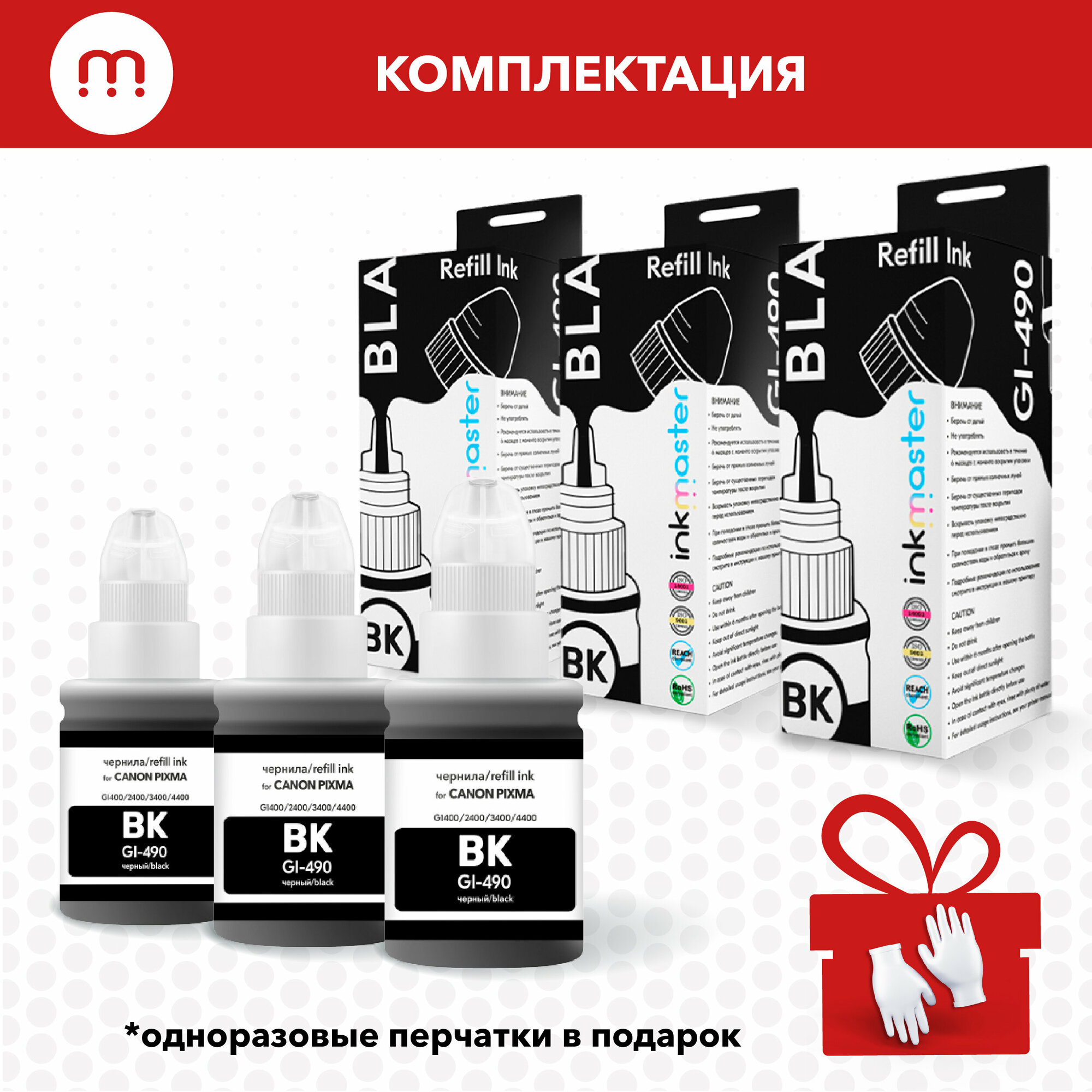 Купить Комплект черных чернил 3шт для Canon PIXMA GI-490, краска для заправки принтера G1000 G1400 G1411 G2400 G2410 G2411 G2415 G3400 G3410 G3415 G4400 и др
