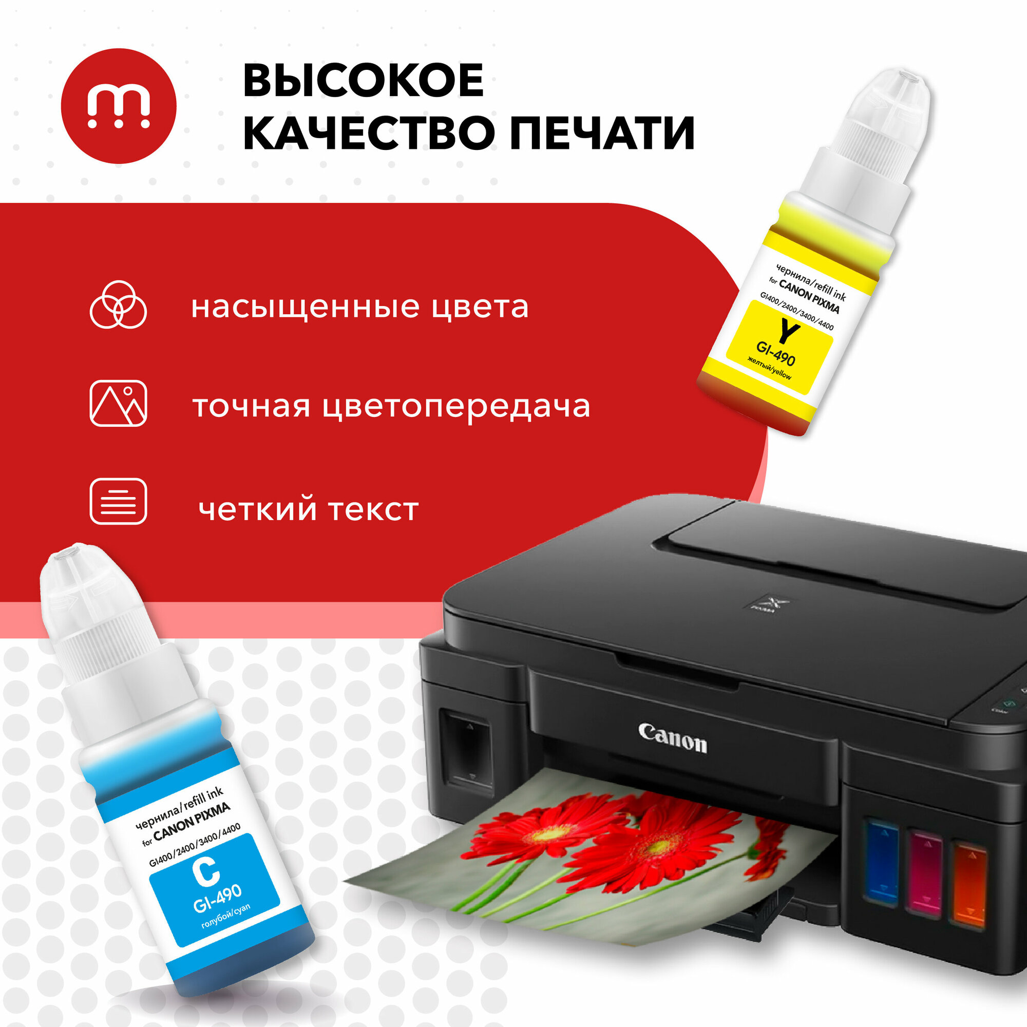 Чернила для Canon PIXMA GI-490, краска для заправки принтера G1000, G1400, G1411, G2400, G2410, G2411, G2415, G3400, G3410, G3411, G3415, G4400 и др.