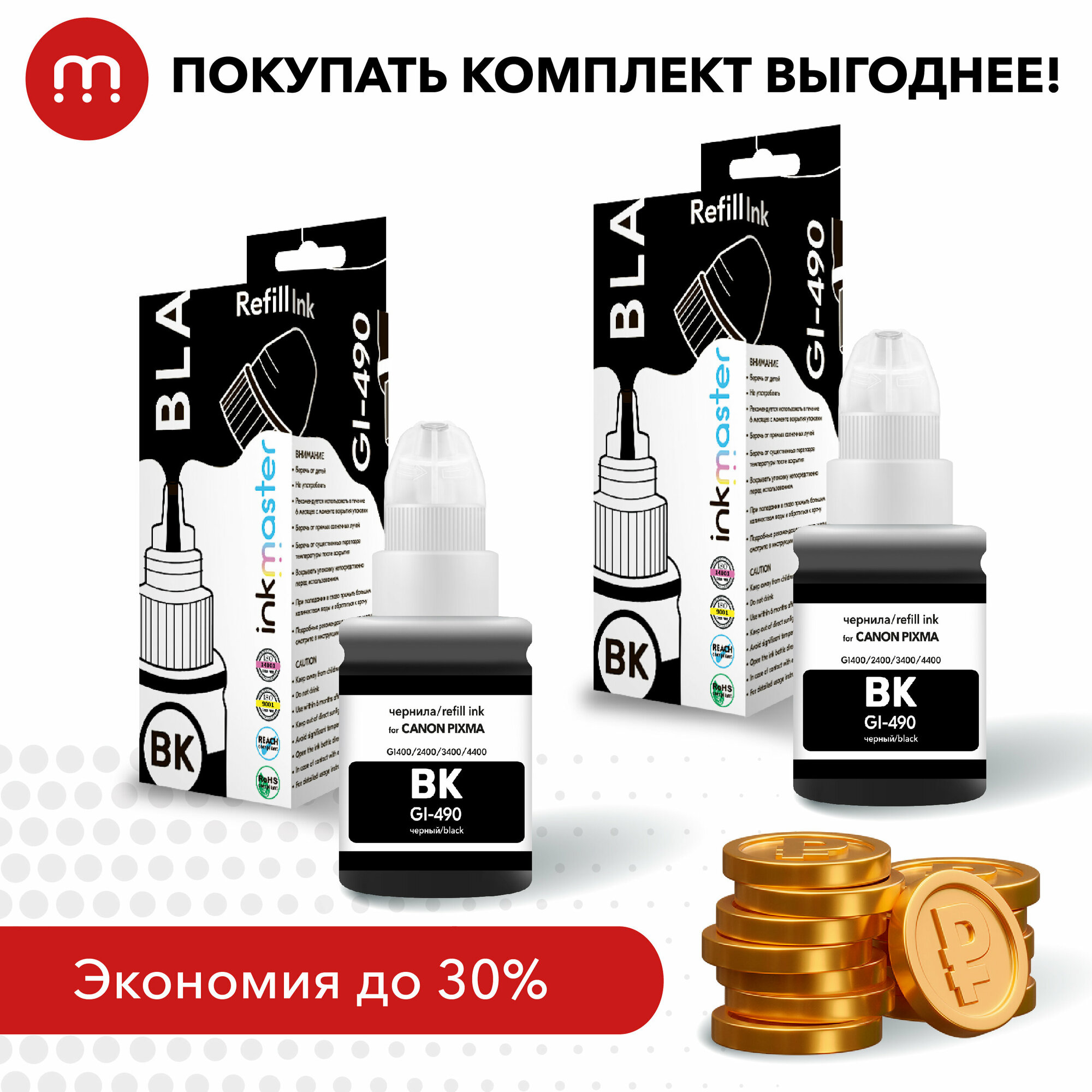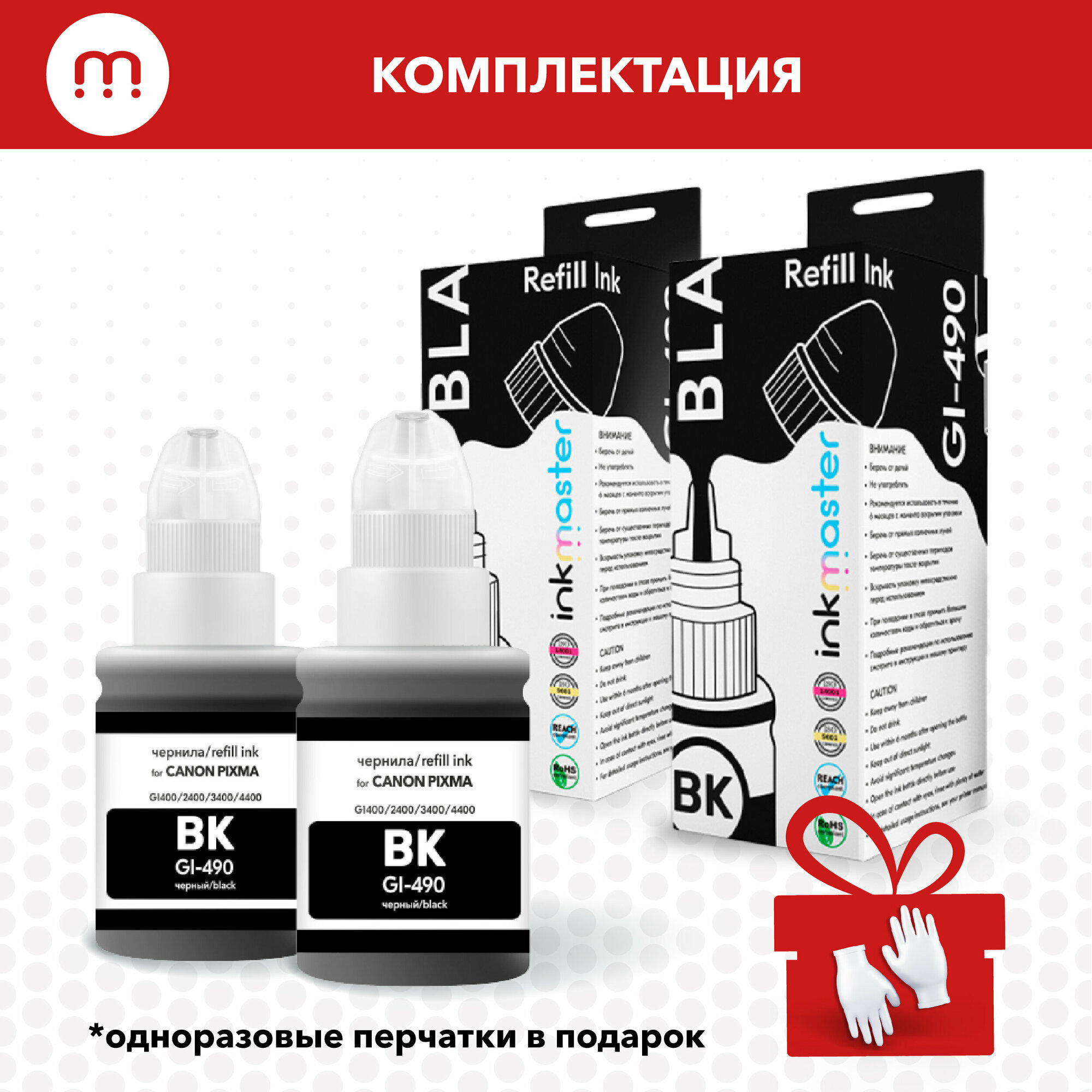 Купить Комплект черных чернил 2шт для Canon PIXMA GI-490, краска для заправки принтера G1000 G1400 G1411 G2400 G2410 G2411 G2415 G3400 G3410 G3415 G4400 и др