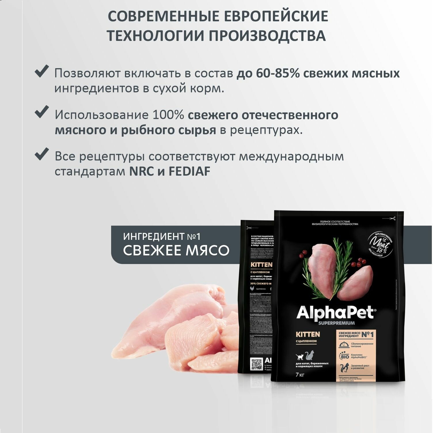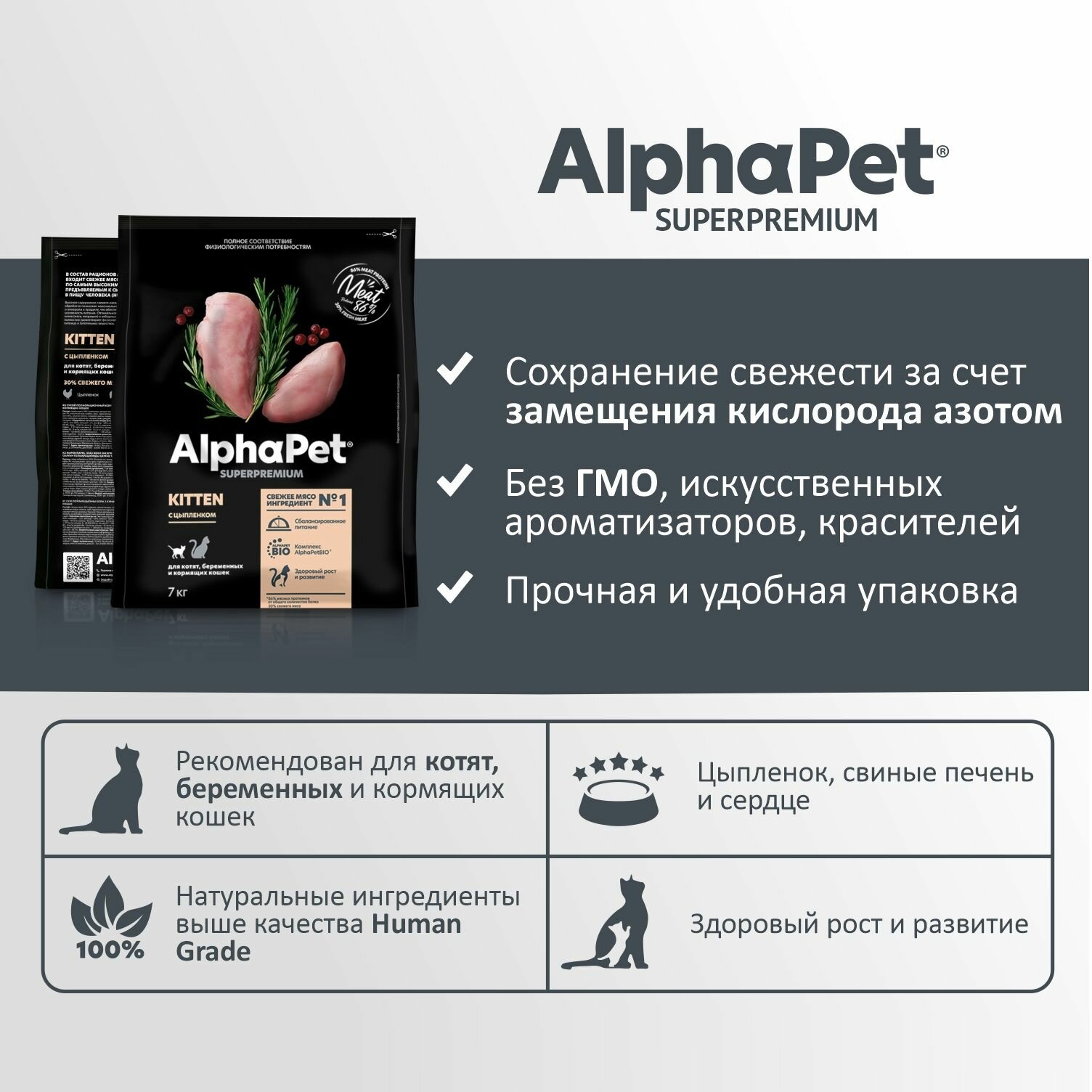 ALPHAPET SUPERPREMIUM Сухой корм для котят, беременных и кормящих кошек с Цыпленком