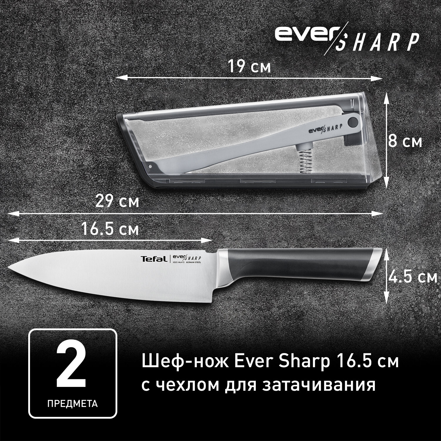 Шеф-нож Tefal Ever Sharp K2569004, лезвие 16.5 см + чехол точилка
