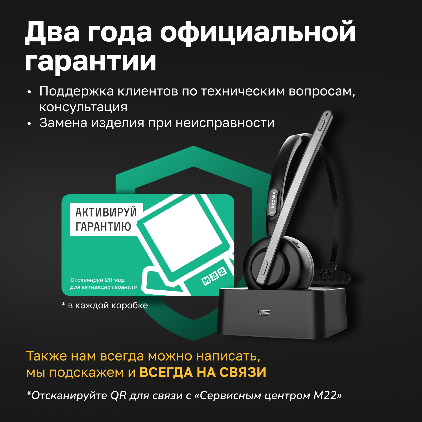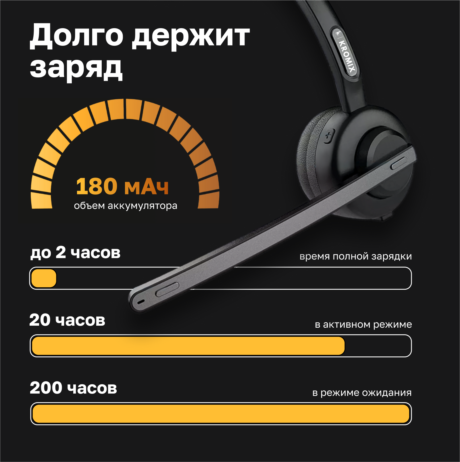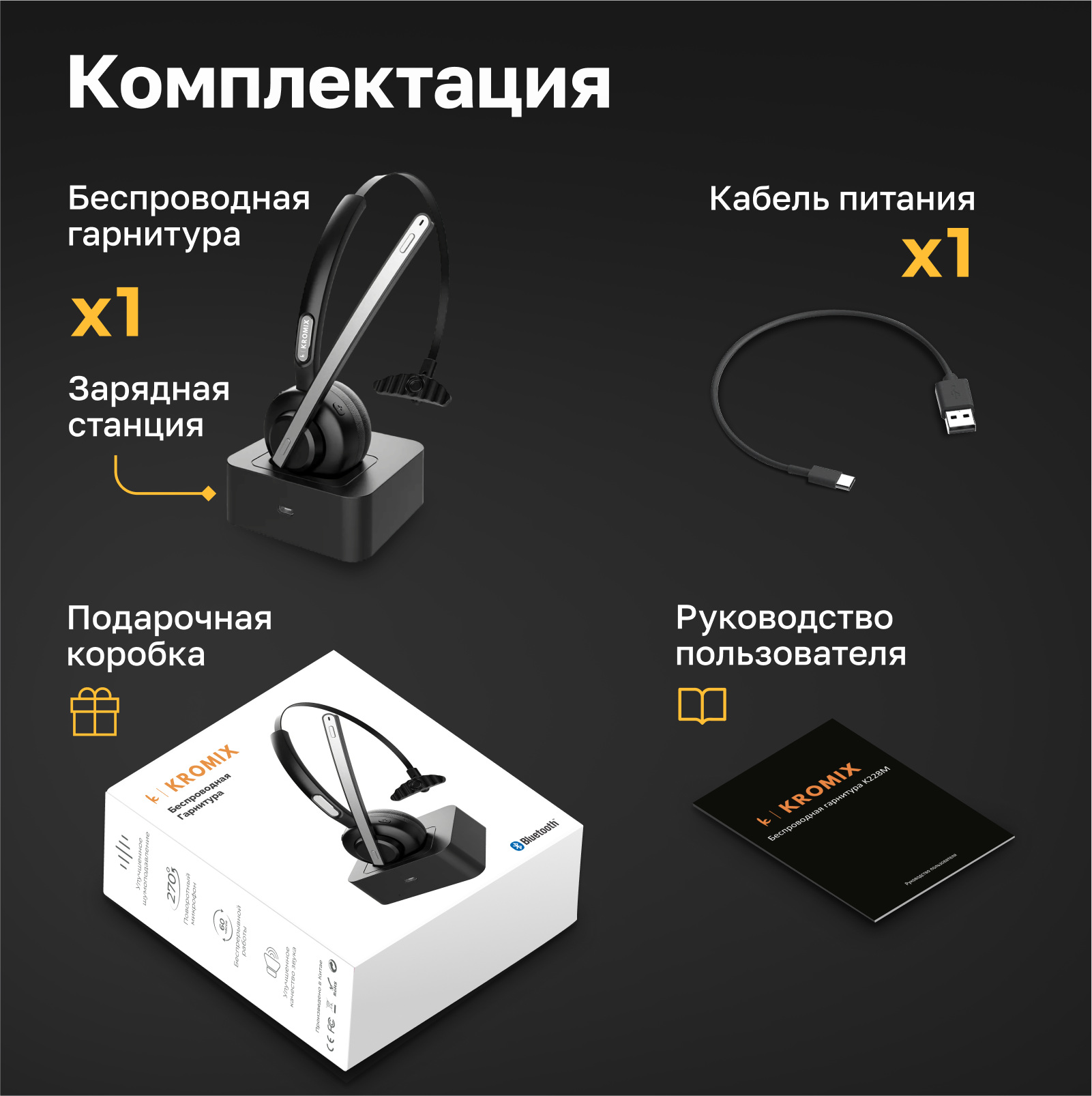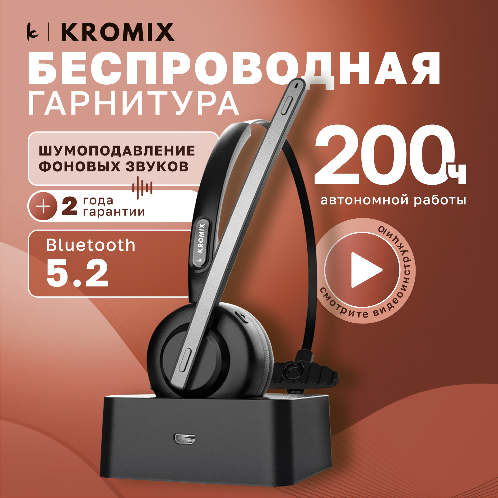 Беспроводная гарнитура Kromix К221, черная, Bluetooth 5.2, с микрофоном, влагозащита IPX2 интересное: