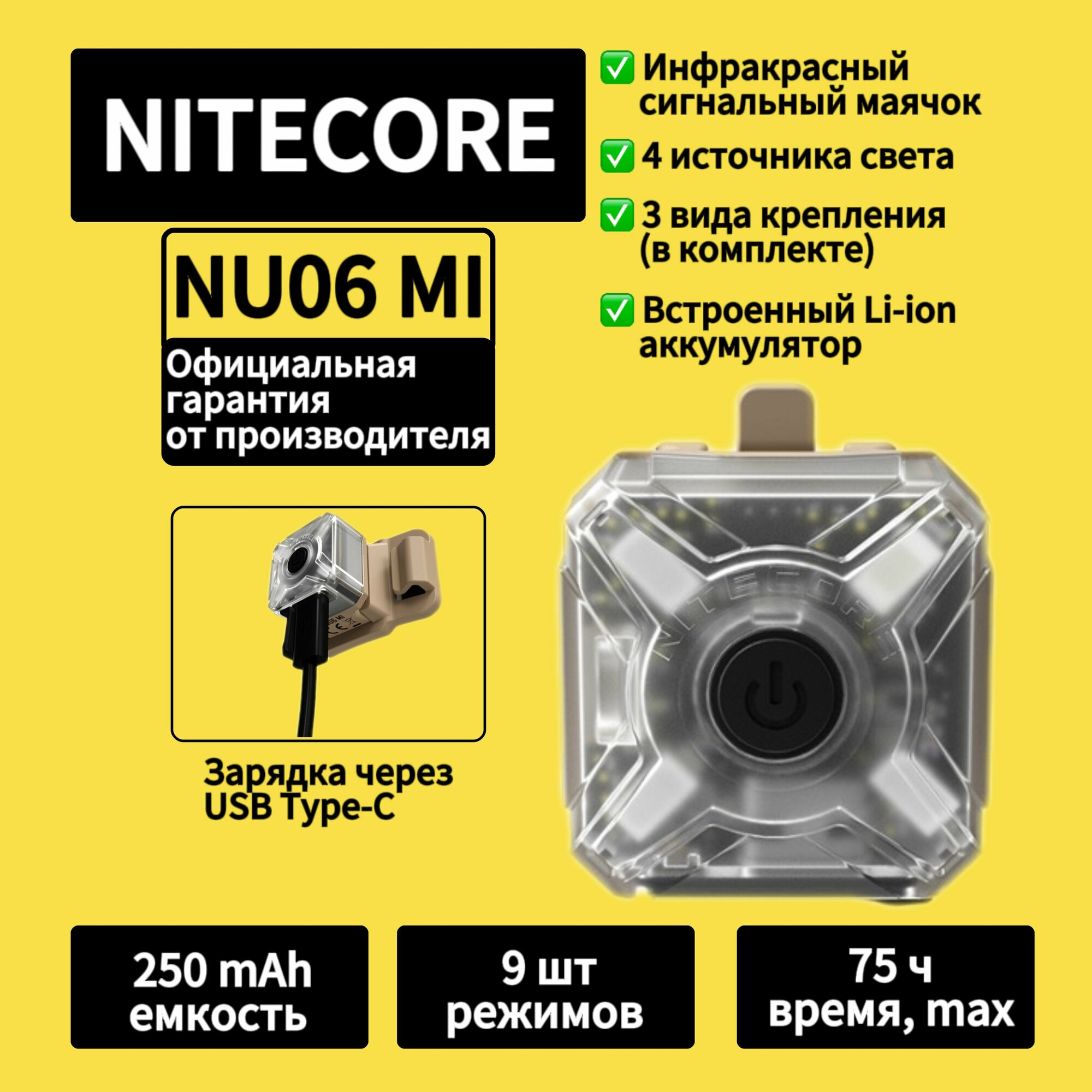 Светодиодный фонарь-маячок NiteCore NU06 MI (ИК видимый)