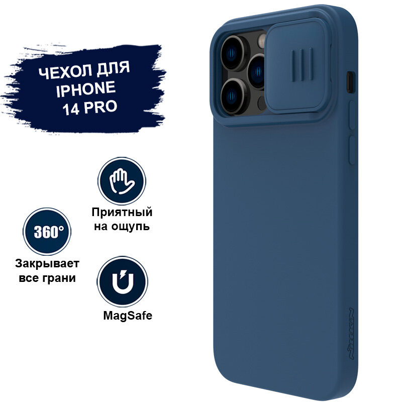 Nillkin для iPhone 14 Pro чехол CamShield Silky Magnetic Silicone Midnight Blue, шт
