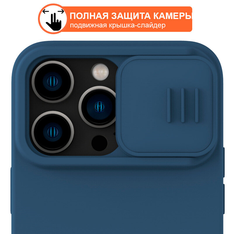 Купить Силиконовый чехол с защитой камеры Nillkin CamShield Silky (Magnetic ) Silicone Case для Apple iPhone 14 Pro, синий