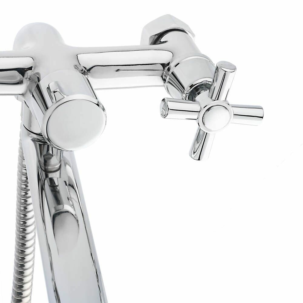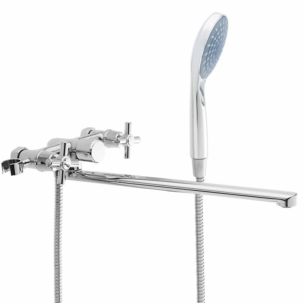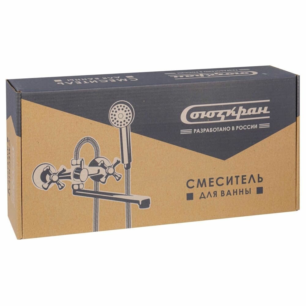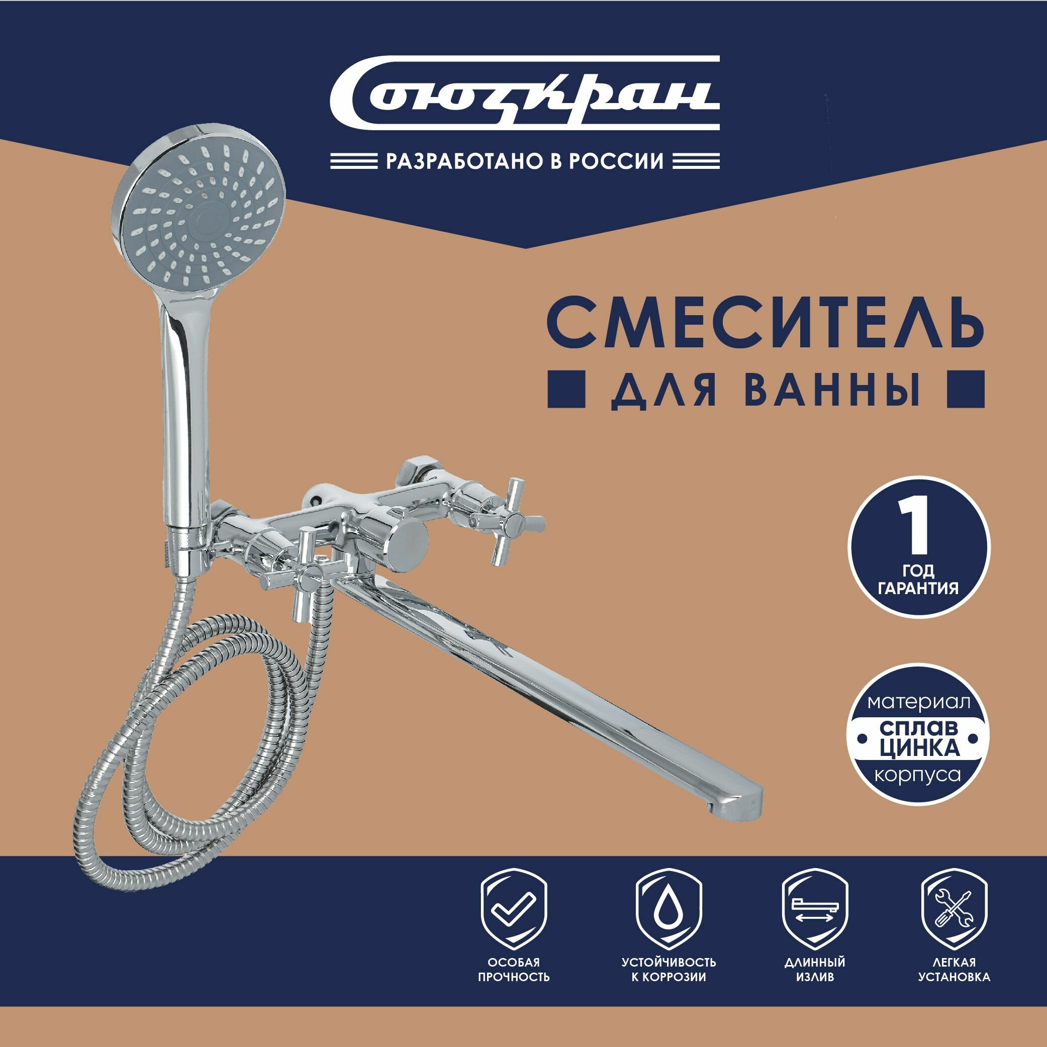 Смеситель для ванны с душем, прямой излив 35 см СоюзКран, вентильный, лейка и шланг для душа в комплекте