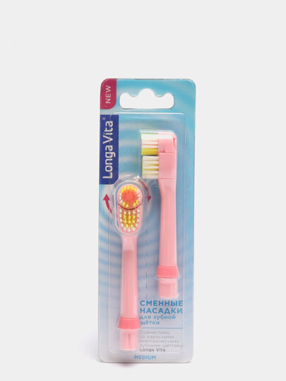 Насадки сменные для электрической зубной щётки Longa Vita, щетина средней жёсткости, розовая интересное: