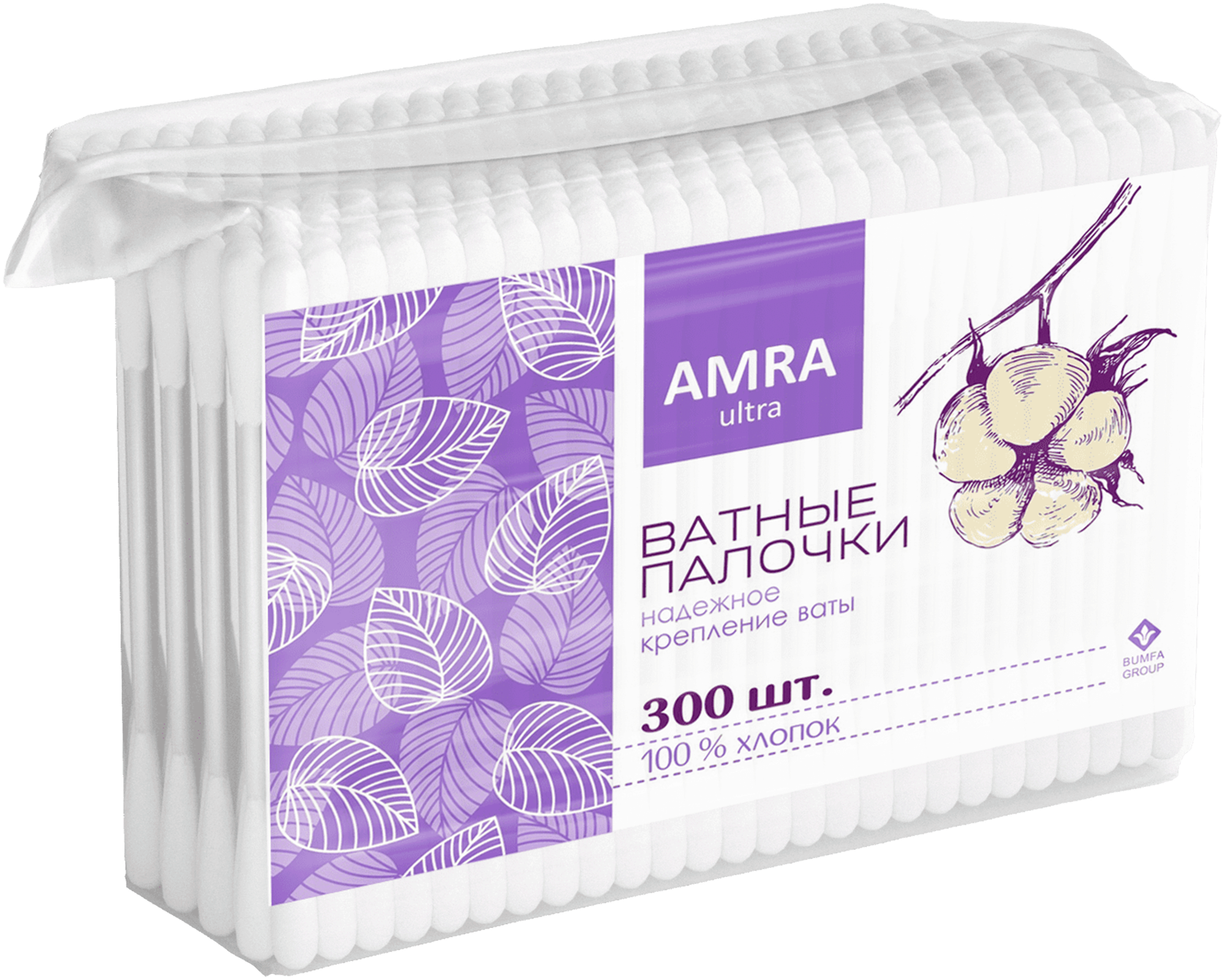 Ватные палочки AMRA, гигиенические 300 штук, пакет. Эконом упаковка
