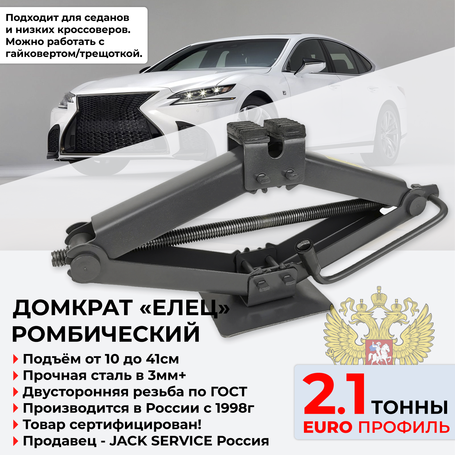 Домкрат ромбический 2.1 Тонн + Евро Профиль для седанов и кроссоверов + Под гайковерт/трещотку - Россия г.Елец