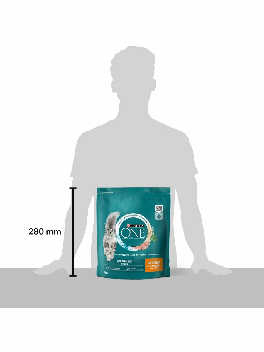Purina ONE Сухой корм для взрослых кошек, с курицей и цельным злаками, 750 г, 2 уп