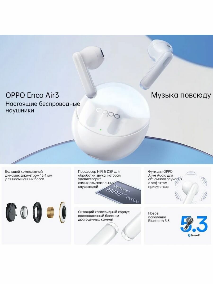 Беспроводные наушники OPPO Enco Air 3, белые, Глобальная версия