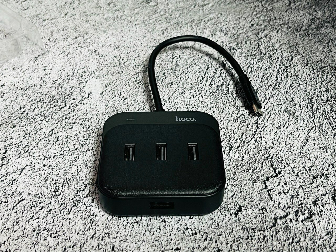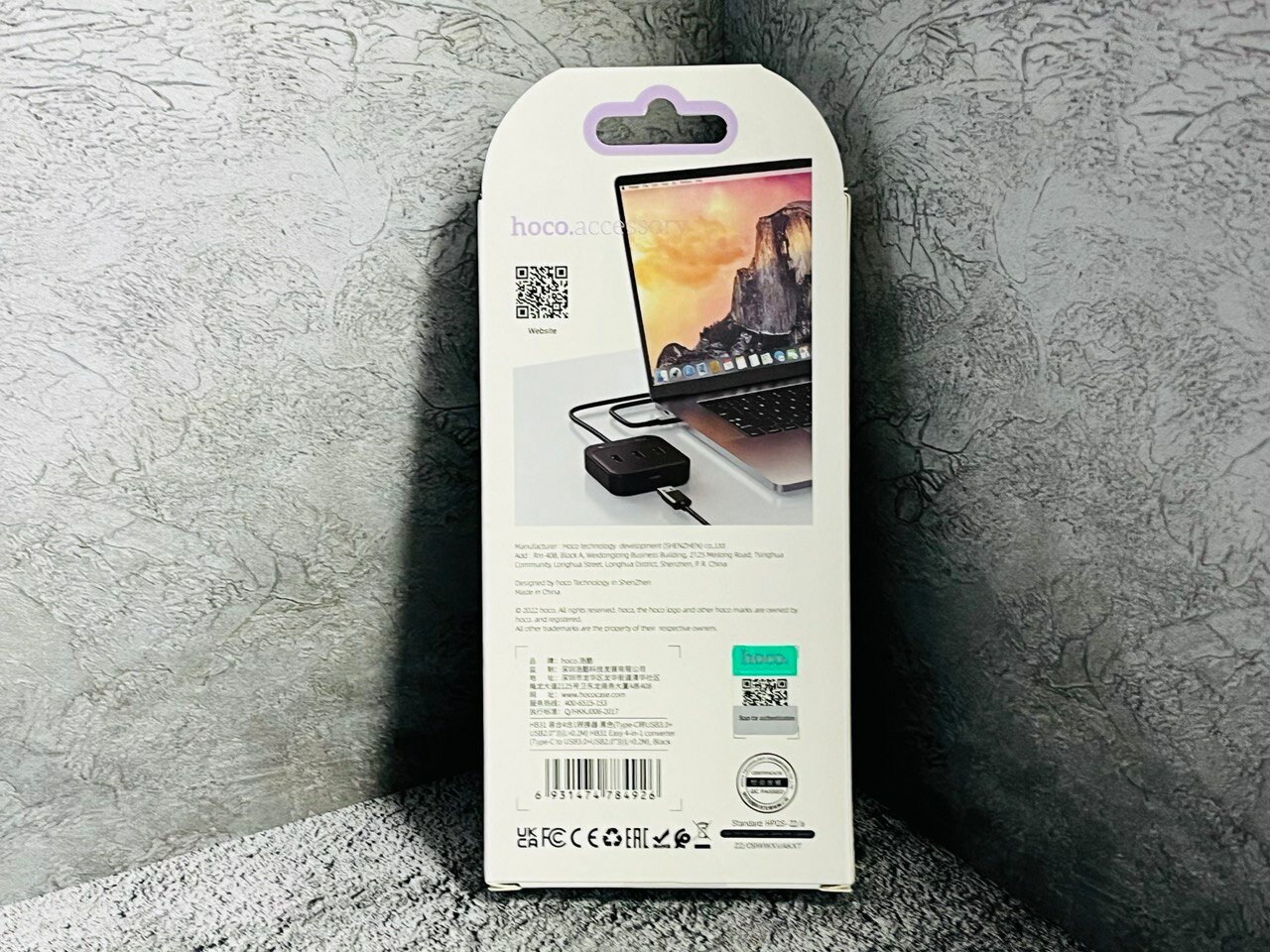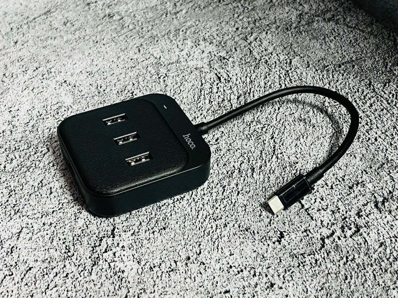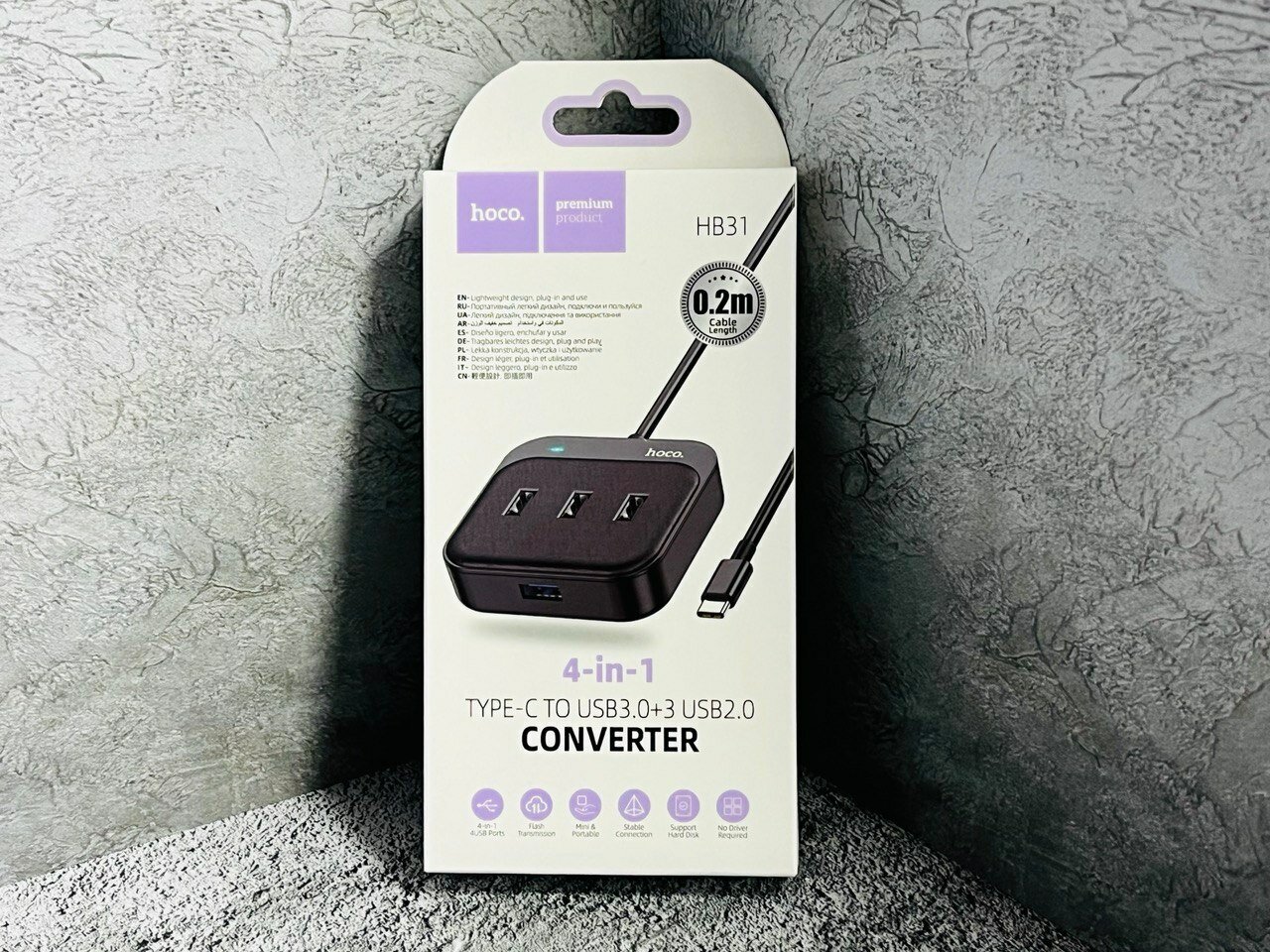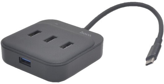 Переходник HUB HOCO HB31 на 4 порта USB, разъем USB-C, 0.2 метра, черный