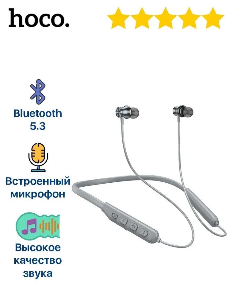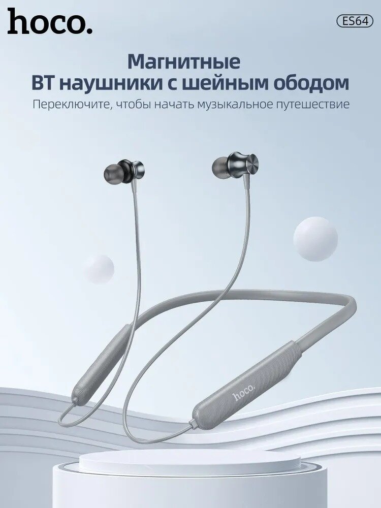 Беспроводные Bluetooth-наушники вакуумные с шейным силиконовым ободом Hoco ES64 Sport Wireless, 30 часов работы, серые
