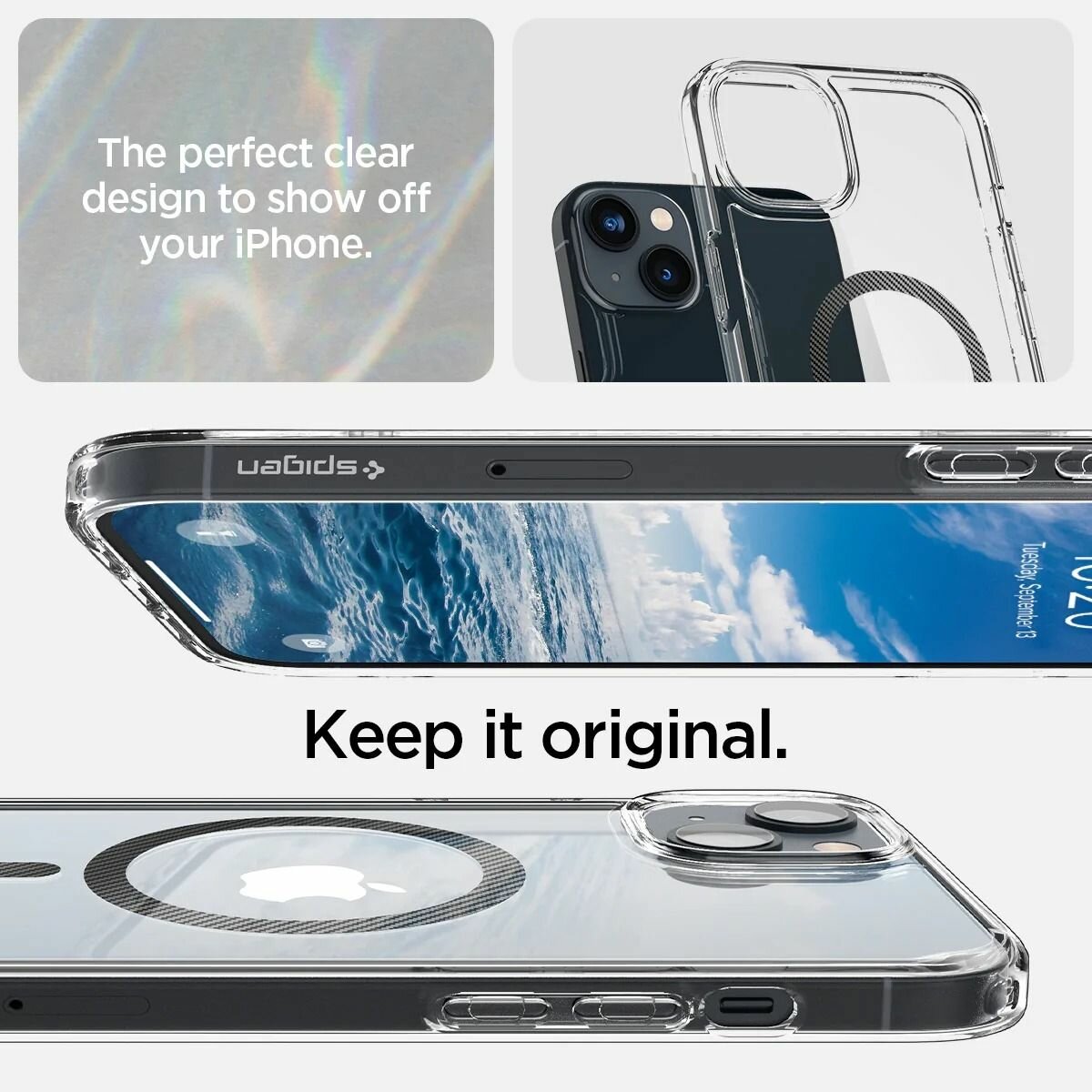 Чехол Spigen Ultra Hybrid (MagFit) для iPhone 14, прозрачный/белое кольцо