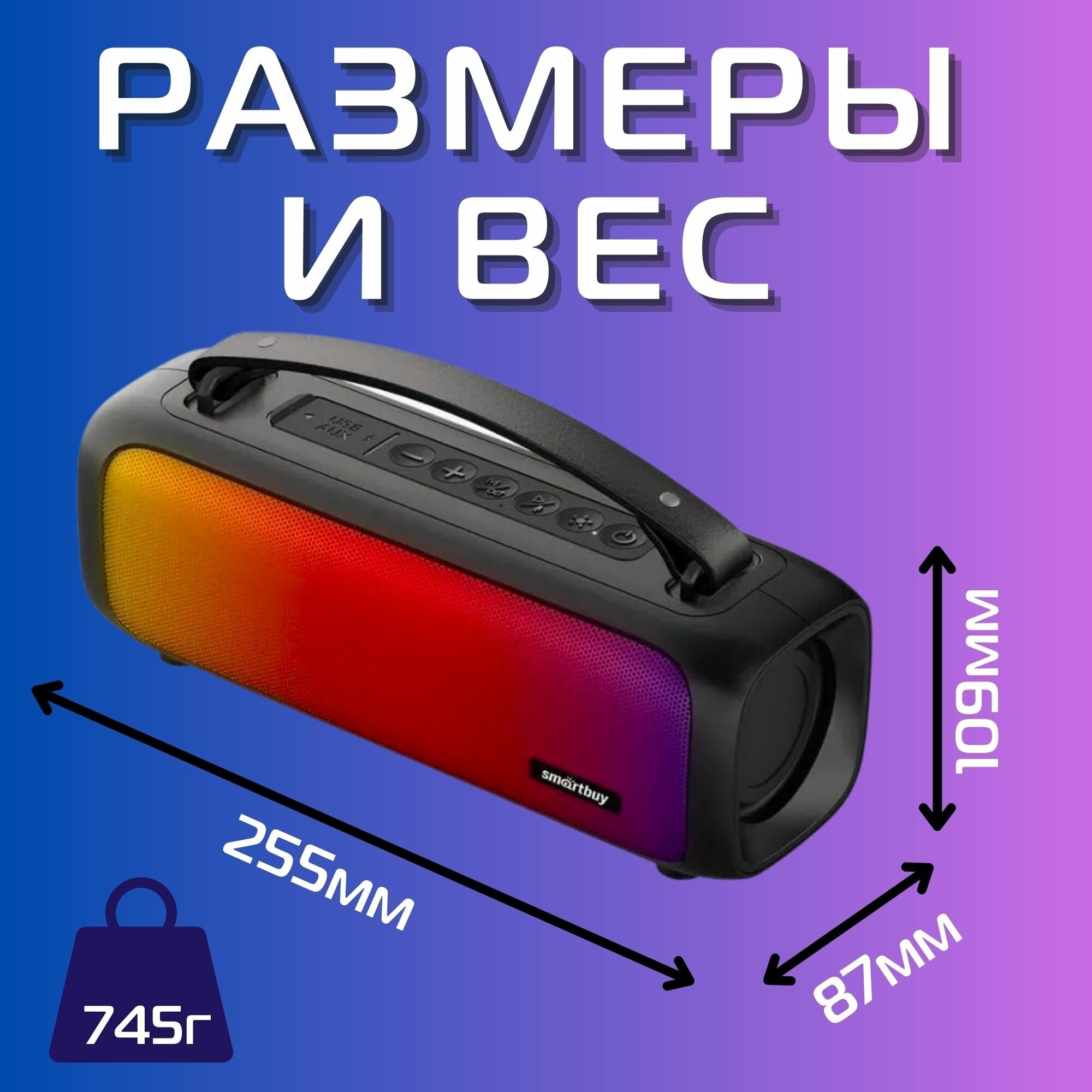 Портативная колонка Smartbuy FIGHTER, 16 Вт, BT 5.0, FM, microSD, USB, AUX, подсветка