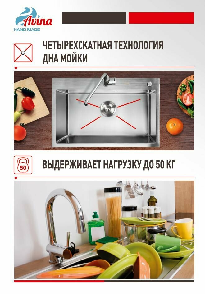 | Особенности | дозатор для мыла / измельчитель пищевых отходов / коландер / отверстие под смеситель / сливная арматура |