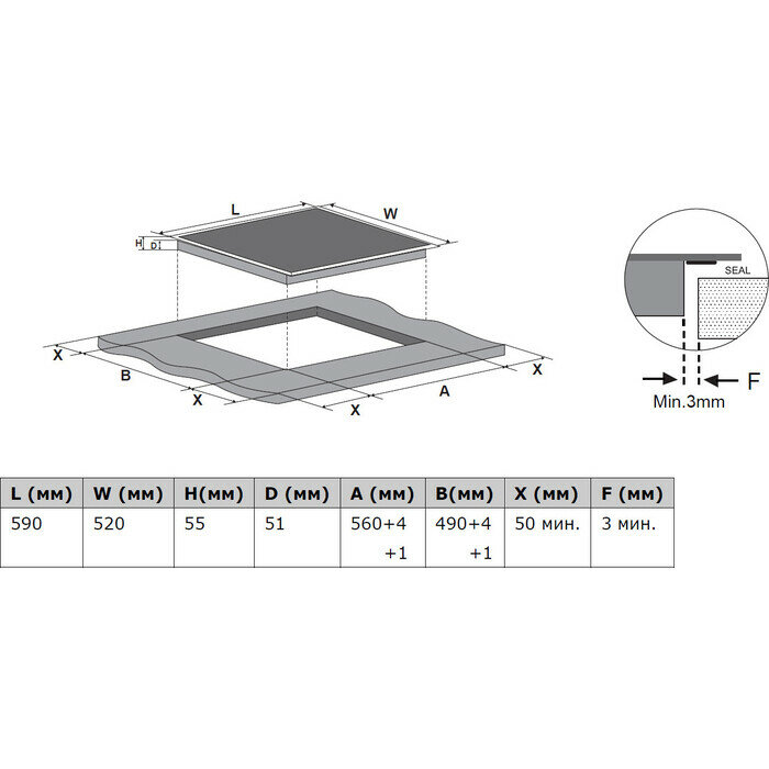 | Ширина для встраивания | 56 см |