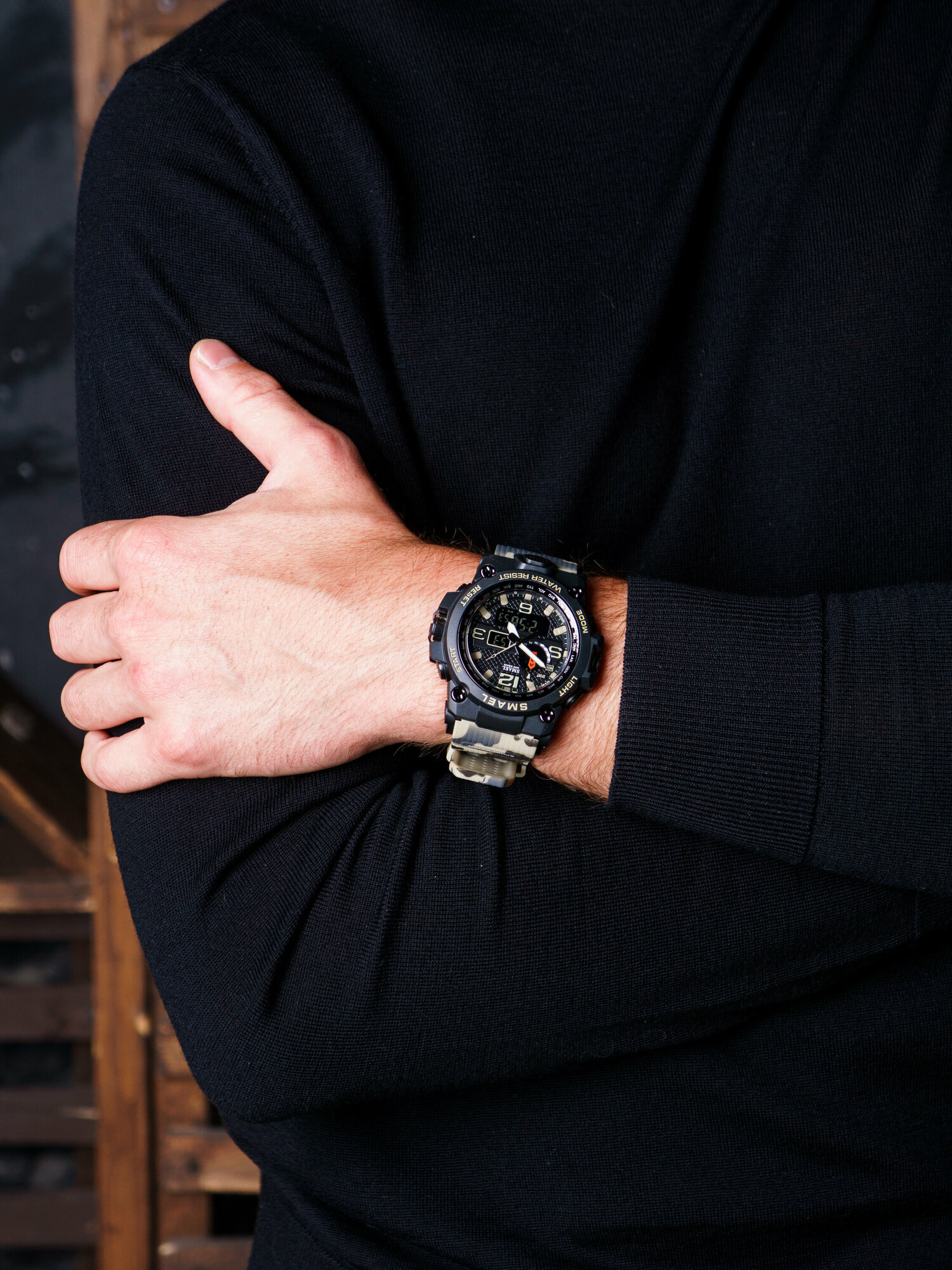 Часы мужские наручные тактические кварцевые электронные SMAEL SM1545 спортивные и водонепроницаемые, черные