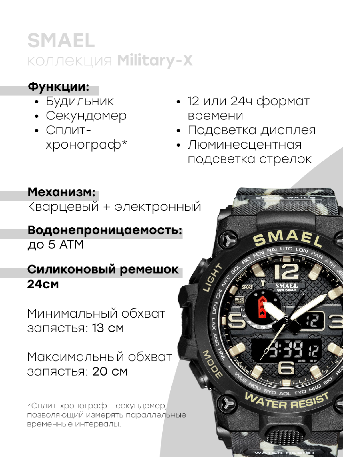 | Циферблат | аналоговый + цифровой |