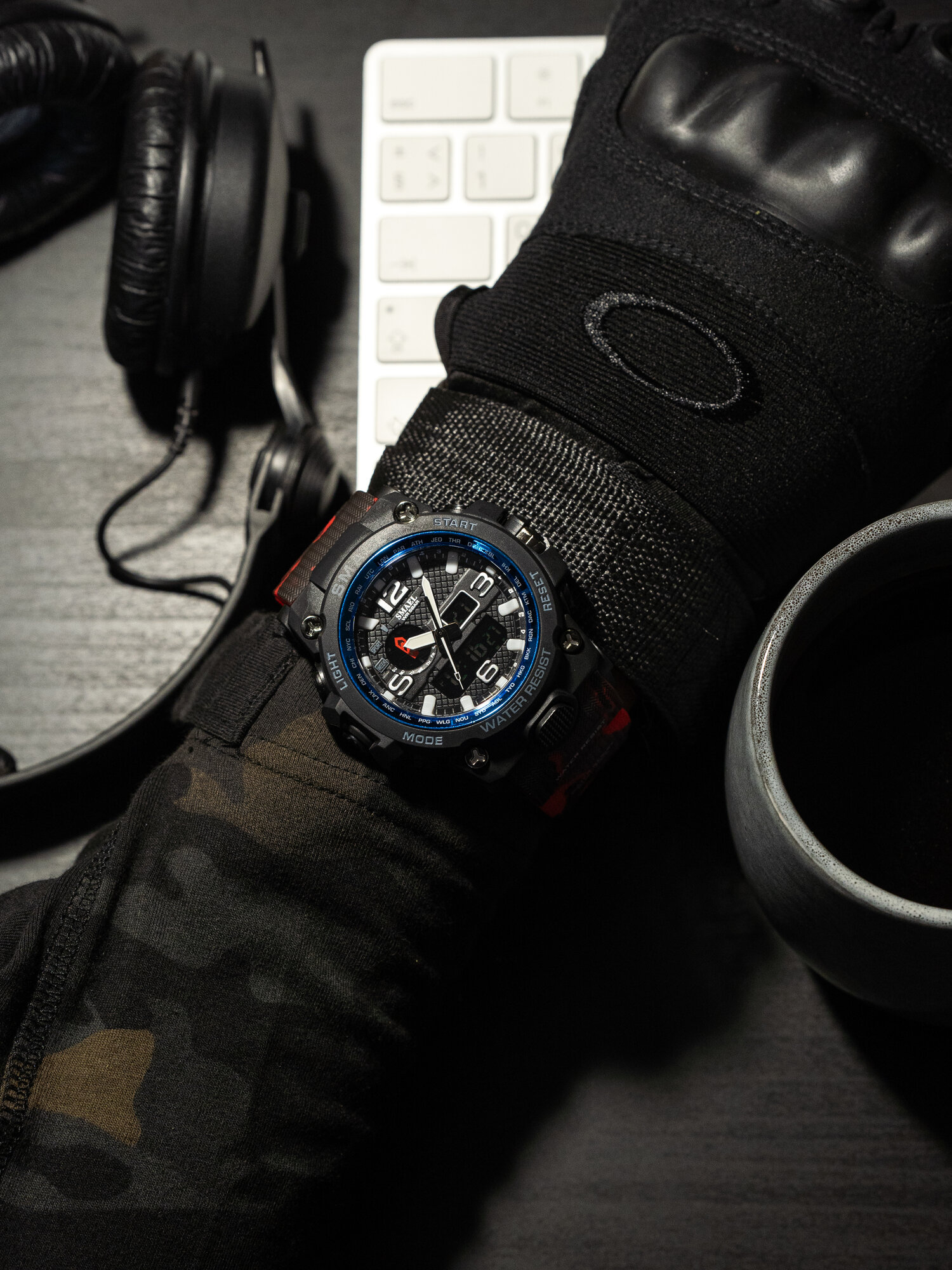Часы мужские наручные тактические кварцевые электронные SMAEL SM1545 спортивные и водонепроницаемые, черные