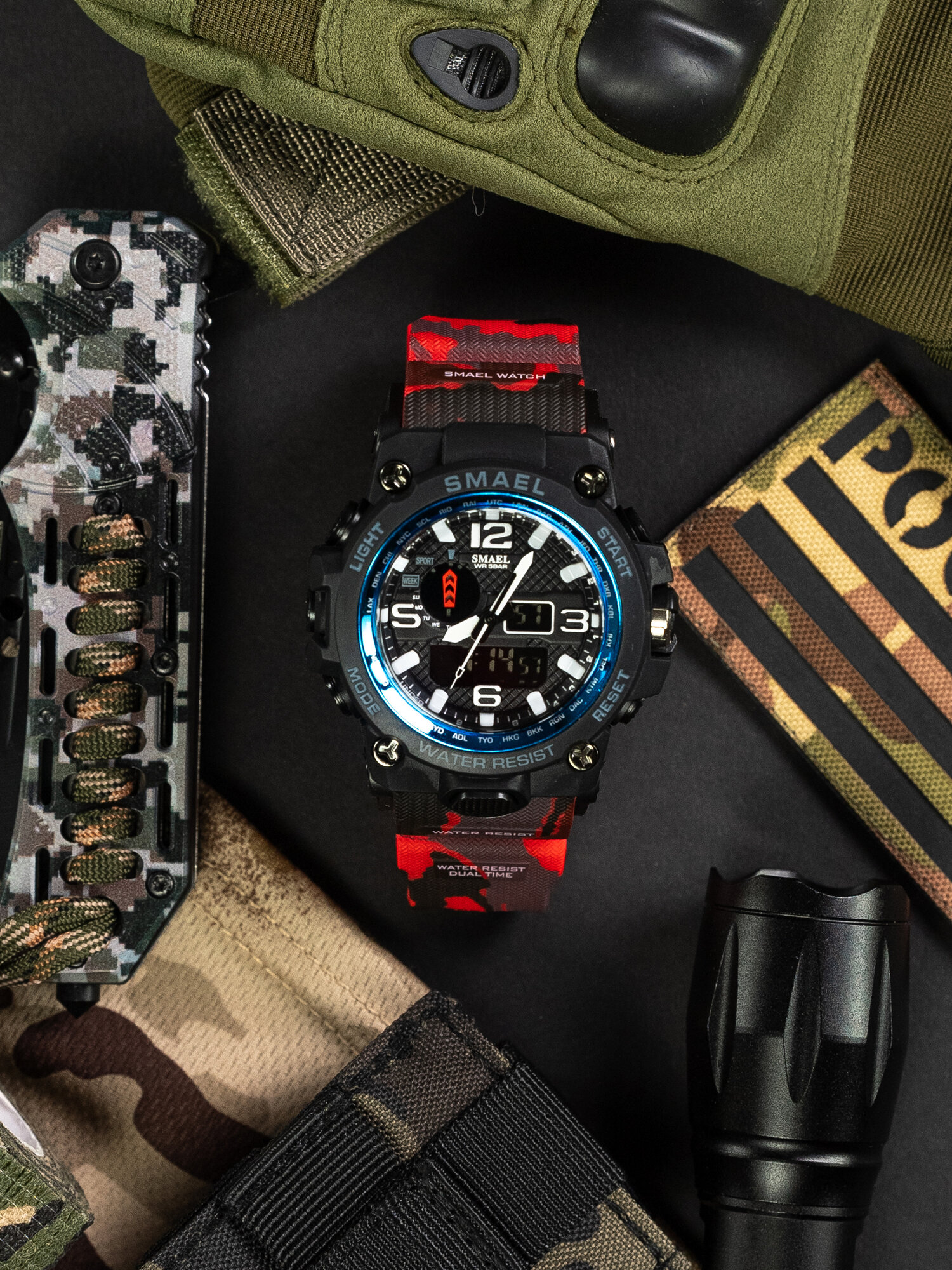 Купить Часы мужские наручные тактические кварцевые электронные SMAEL SM1545 спортивные и водонепроницаемые, красные