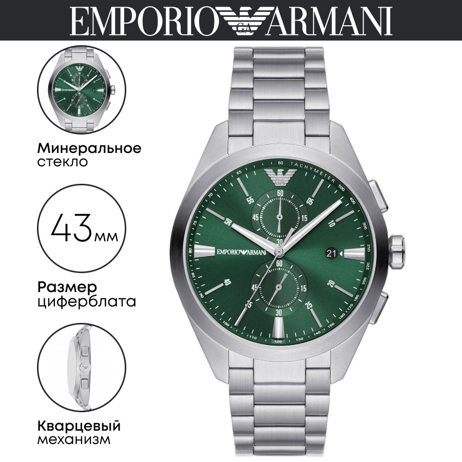 Наручные часы EMPORIO ARMANI мужские Наручные часы Emporio Armani AR11480 кварцевые, секундомер, хронограф, водонепроницаемые, серебряный, зеленый