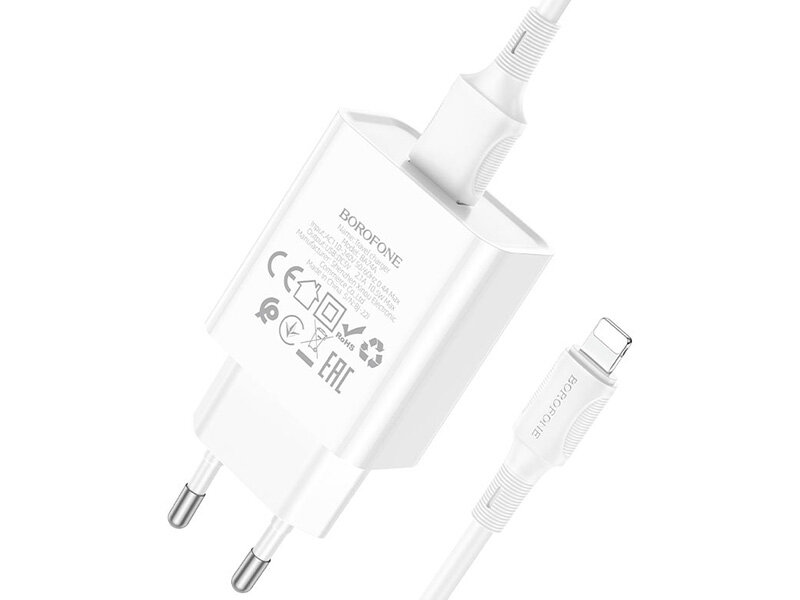 Сетевое ЗУ Borofone BA74A + кабель Lightning (1USB/2.1A) белое
