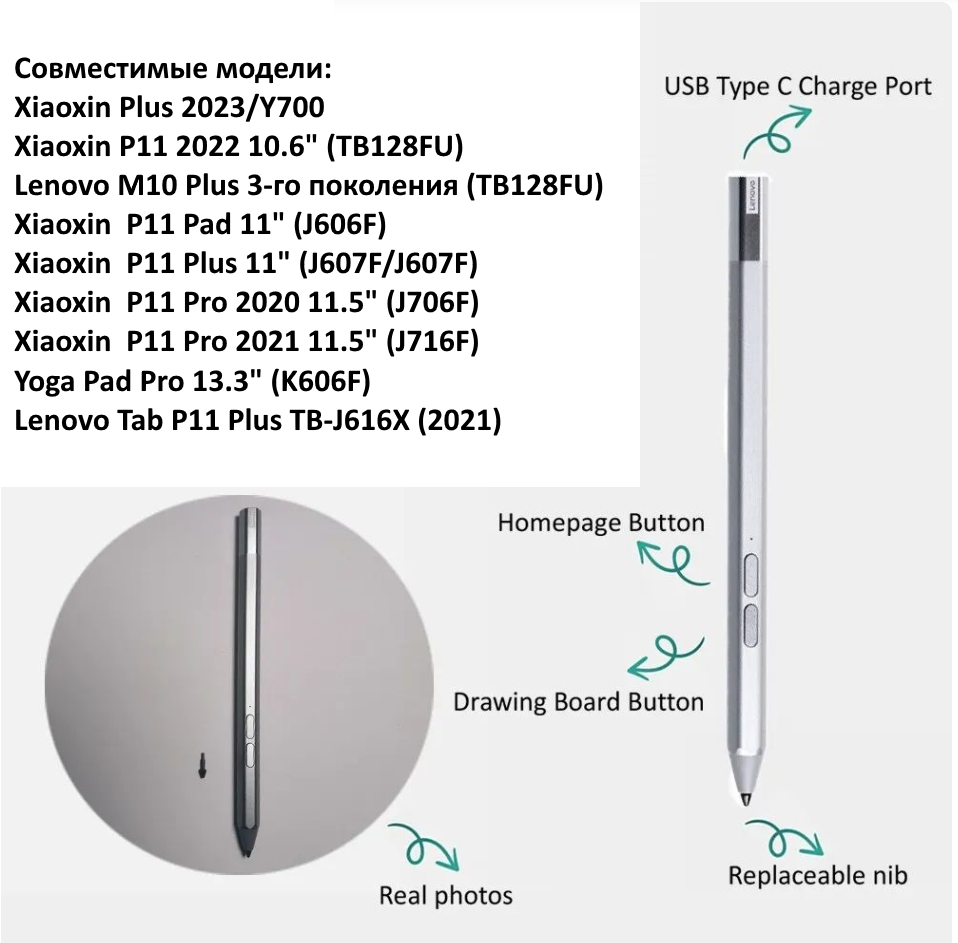 | Совместимость | Legion Y700, Lenovo Xiaoxin Pad P11 Plus 2023, YOGA Pad Pro, P11 Pro 2021, P11 Pro, P11 Plus, P11 2022, P11 и Tianjiao Pad, для Duet Pad |