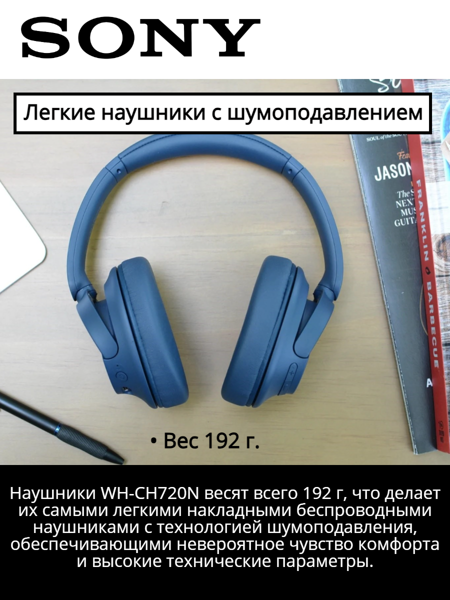 СохранитьБеспроводные наушники с шумоподавлением WH-CH720N/LCE, синий. Оригинал. интересное: