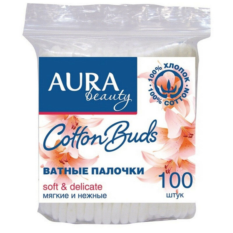 AURA Ватные палочки Aura Beauty Cotton Buds, 100 шт.