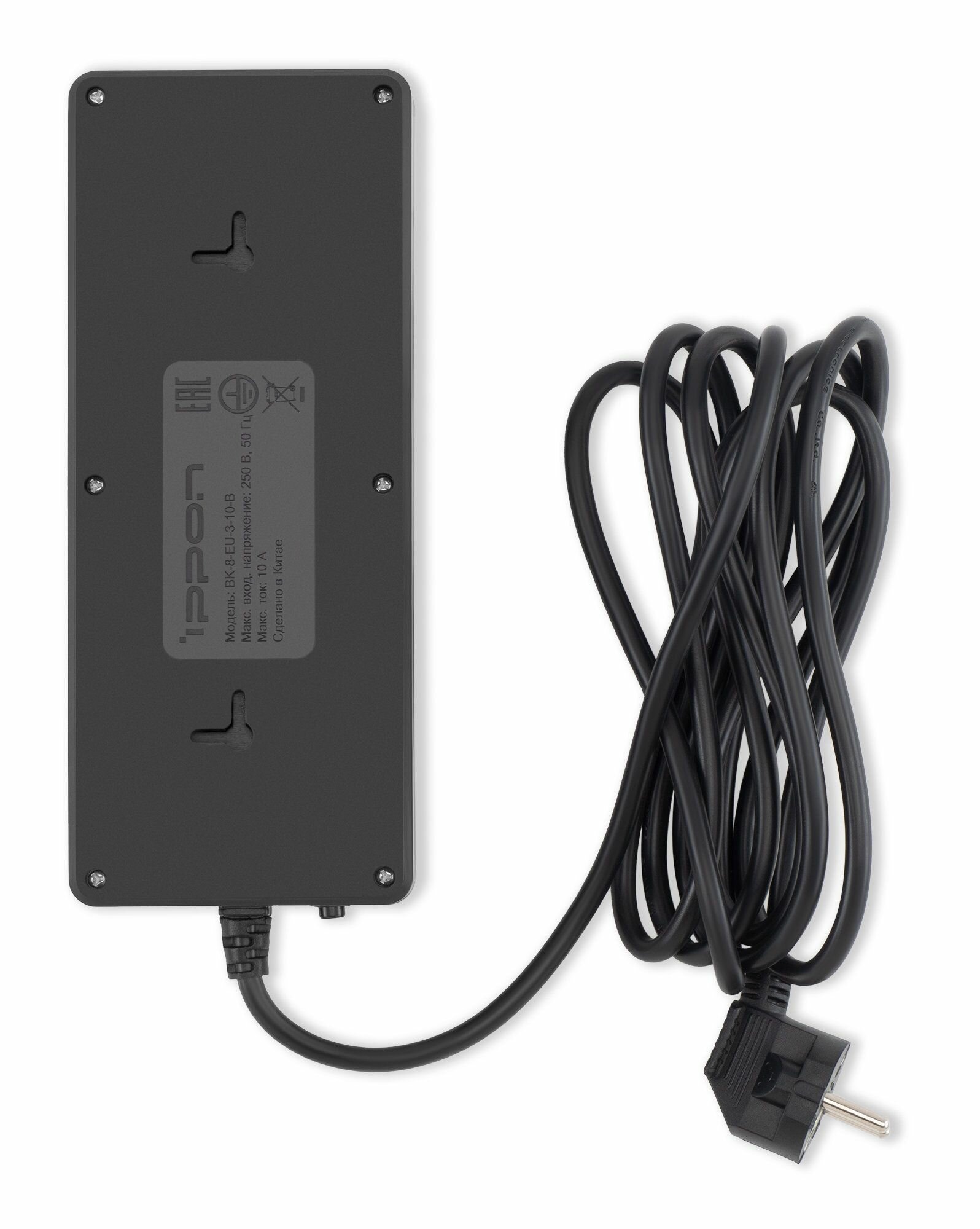 Сетевой фильтр Ippon BK-8-EU-3-10-B 3м (8 розеток) черный (коробка)