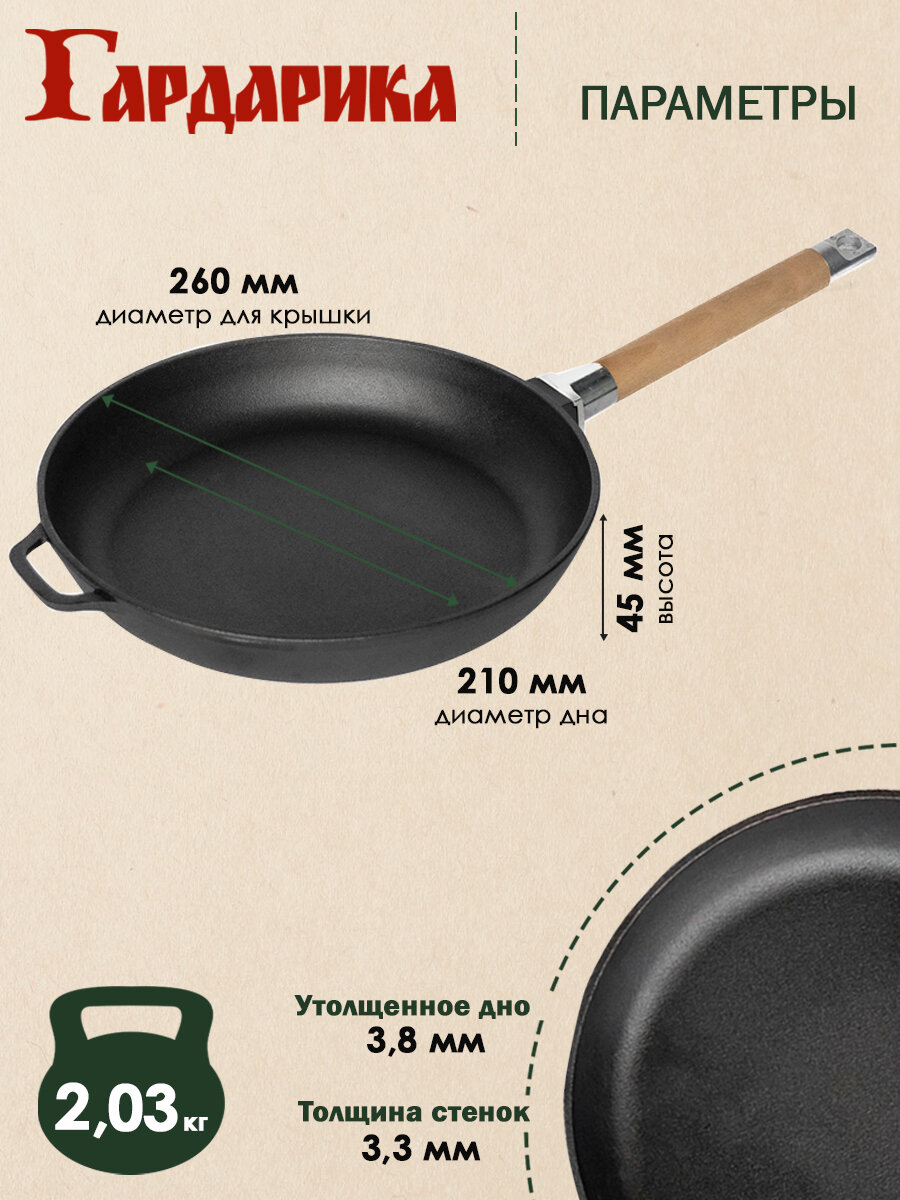 Сковорода чугунная 26 см со съемной ручкой Гардарика