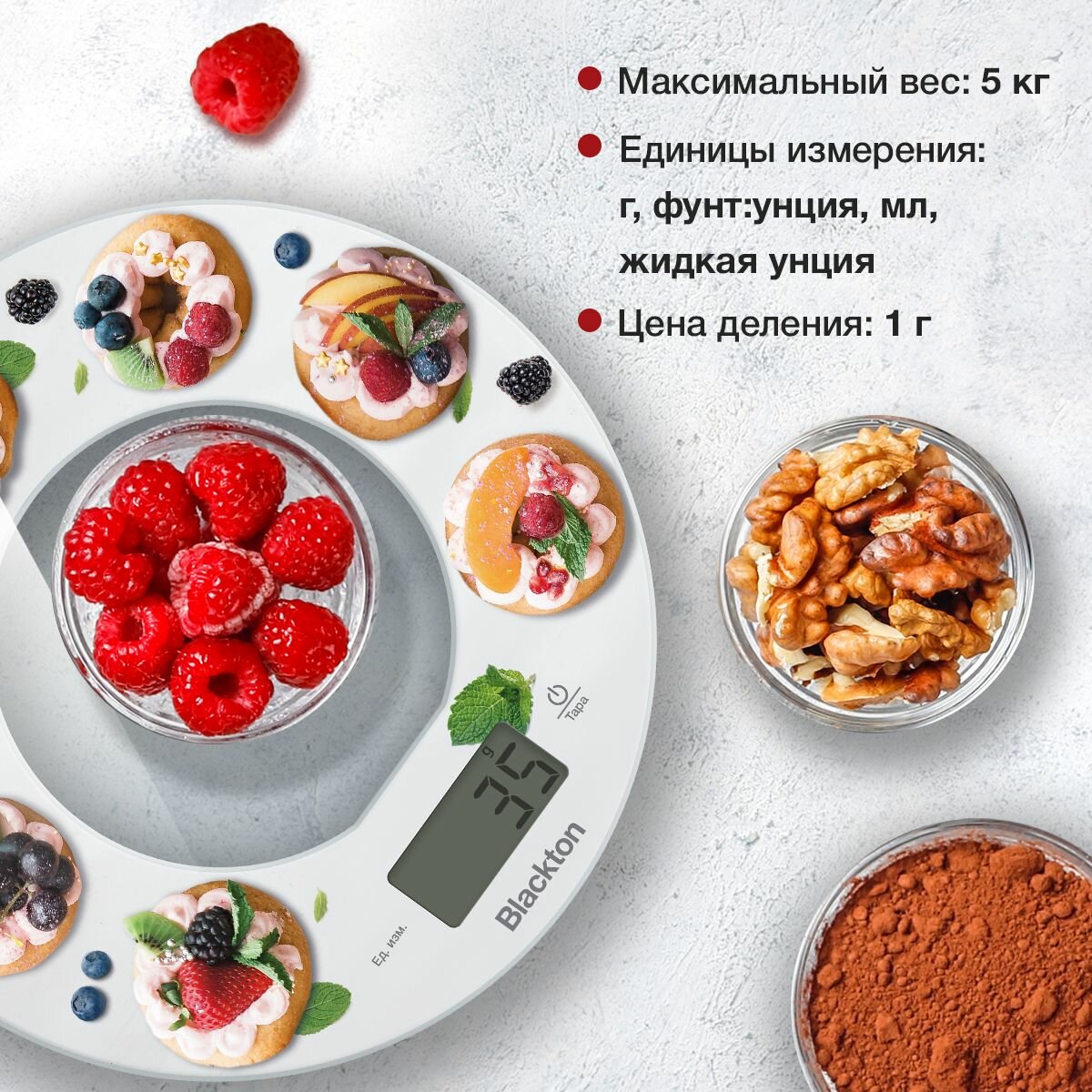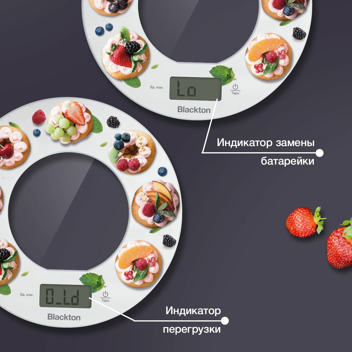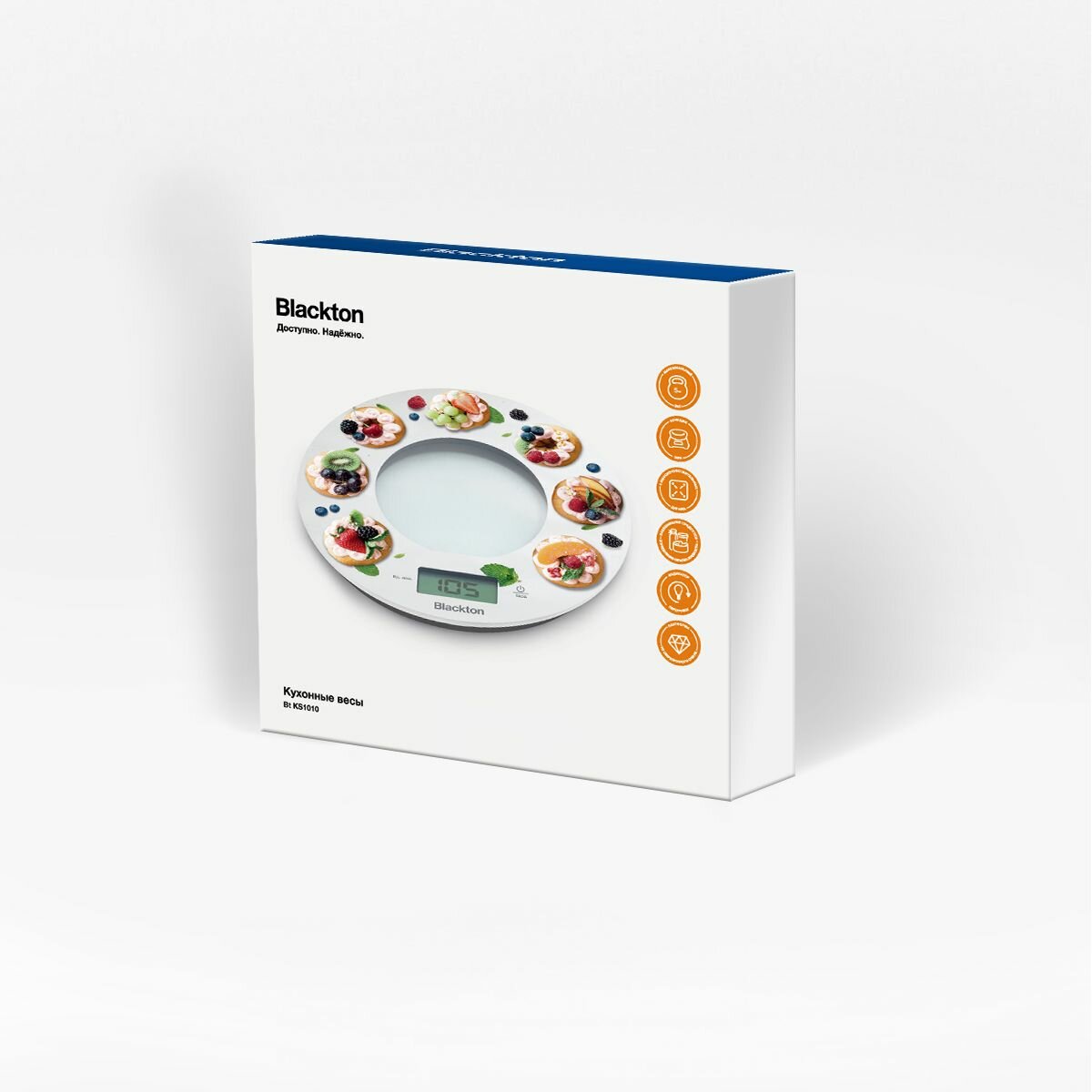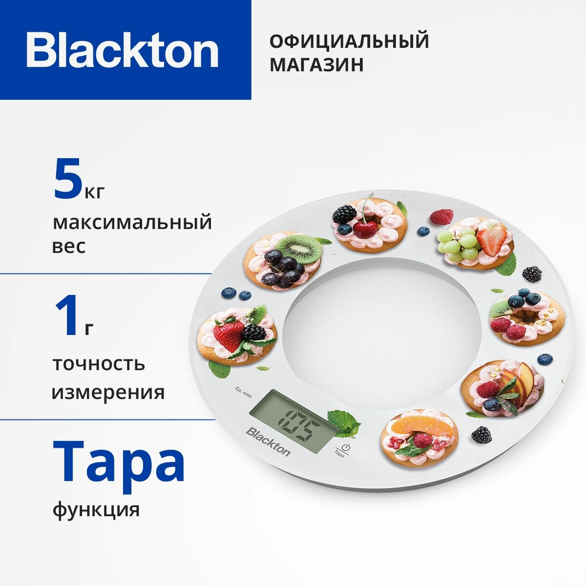 Купить Весы кухонные Блэктон KS1010 Пирожные электронные, стекло, белый с рисунком, нагрузка до 5кг / для взвешивания продуктов / техника для кухни