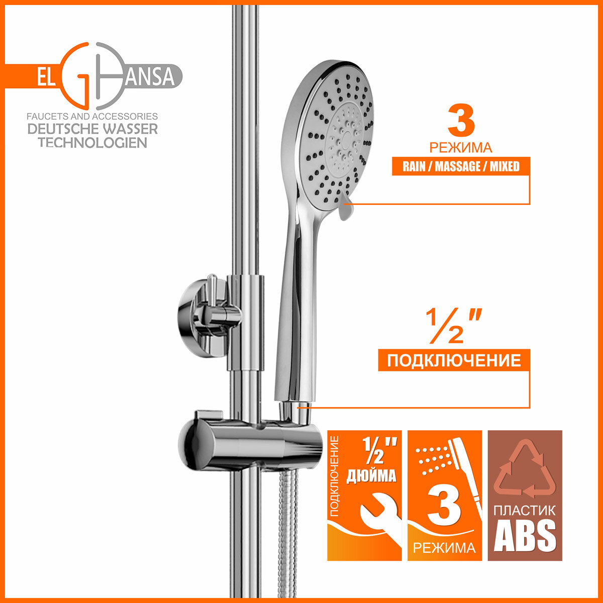 Душевая система Elghansa 2307739-2L (Set-16-New) однорычажная с ABS верхним душем 225 мм интересное: