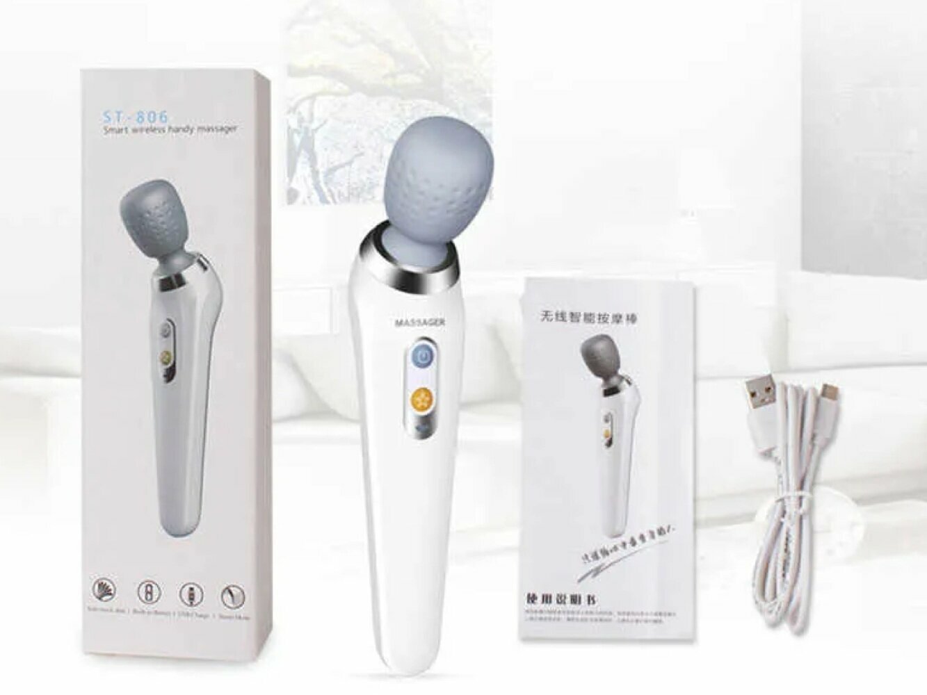 Массажер Smart Wireless handy massager MS-2022 / ST-806 /профессиональный массаж/беспроводной/белый